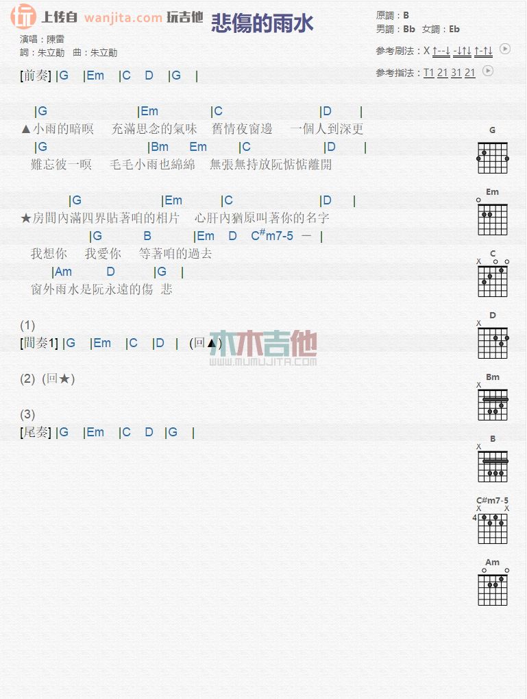 当前位置:琴谱网>吉他弹唱>悲伤的雨水