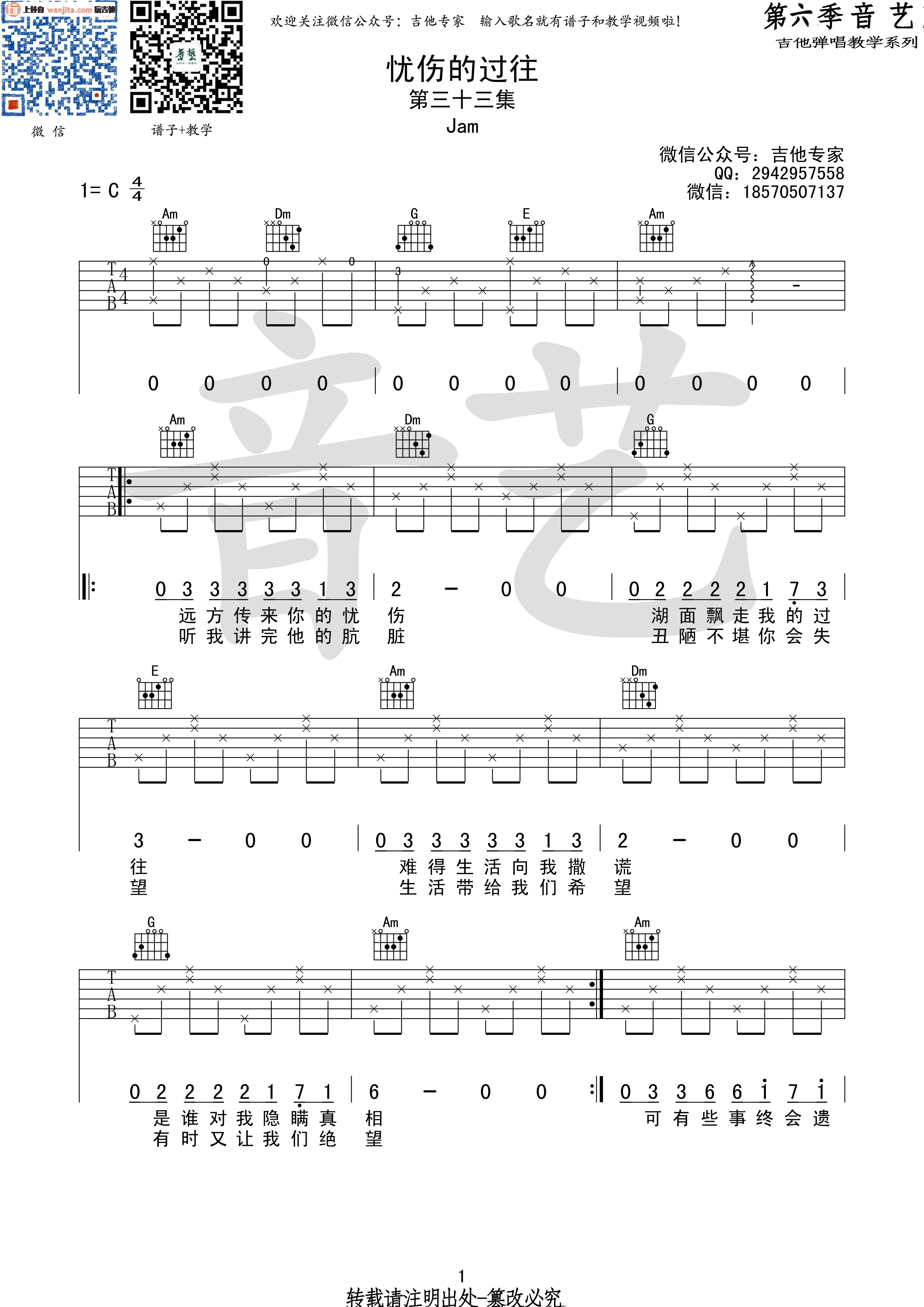 忧伤的过往吉他谱 - Jam(阿敬) - C调吉他弹唱谱