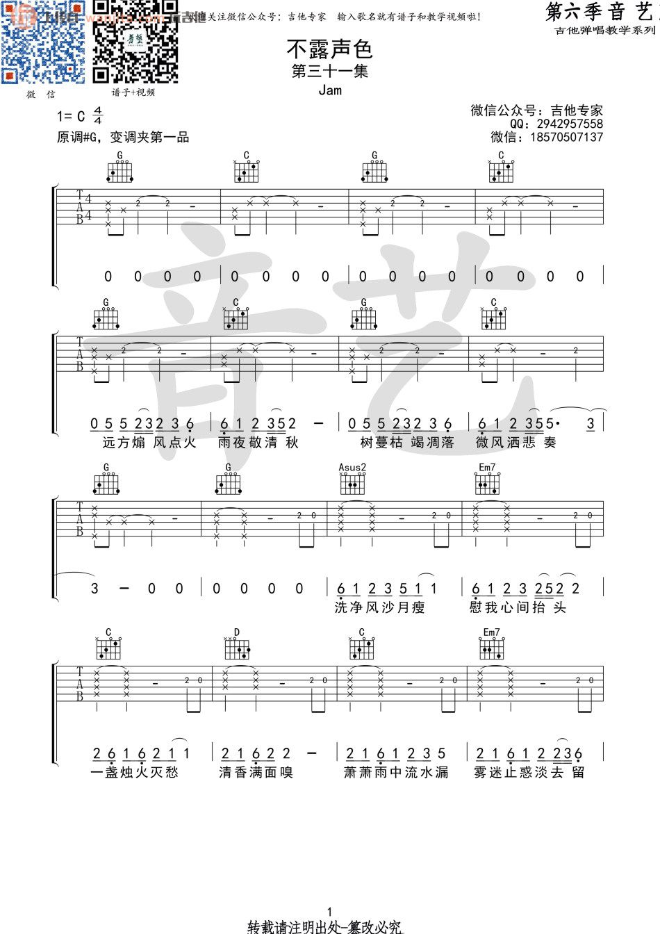 不露声色吉他谱 - Jam(阿敬) - C调吉他弹唱谱 - 原版