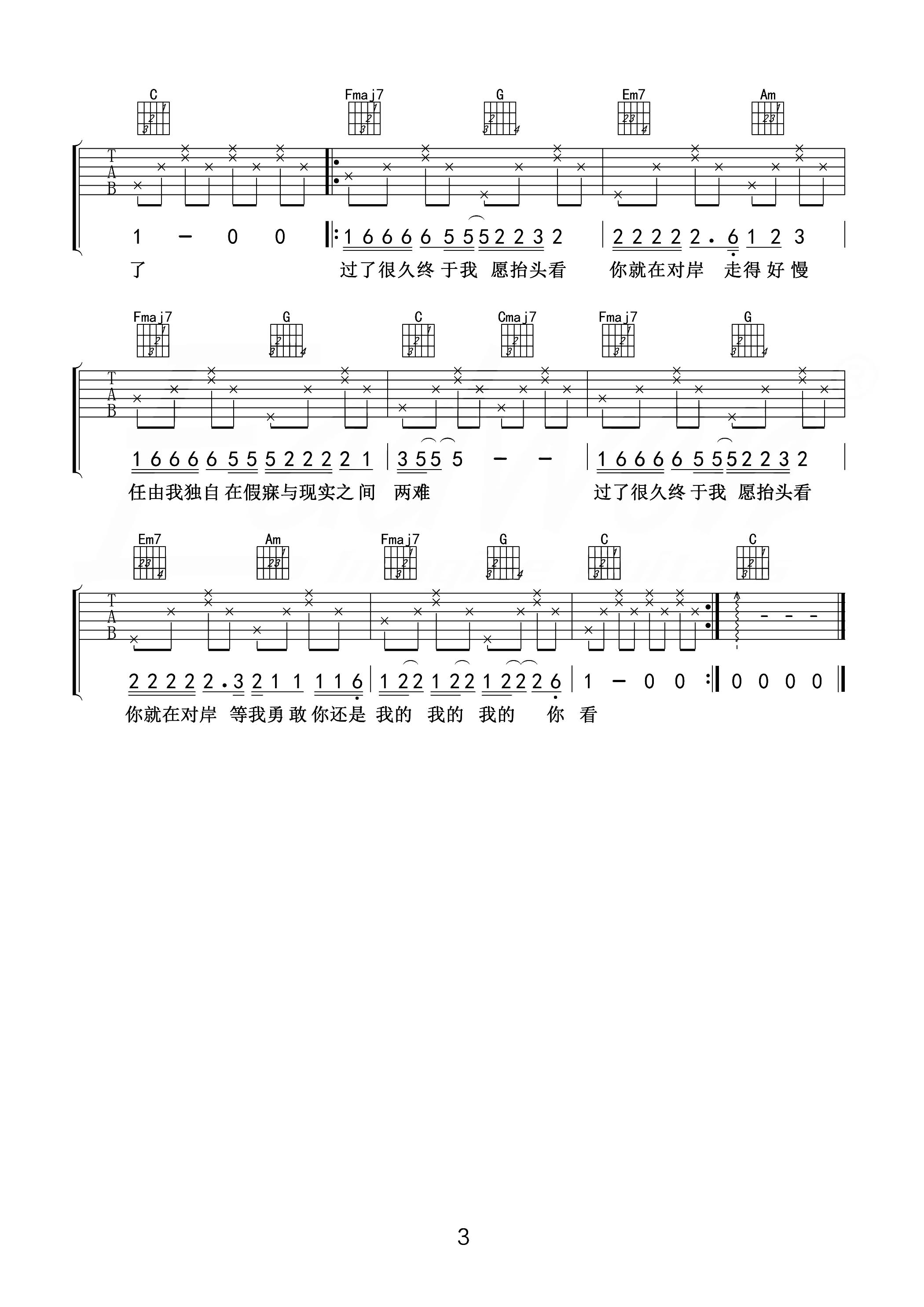 曲谱介绍: 《走马》吉他谱,总共3张高清图片谱,原调为C调,不使用变调夹,速度70BPM,包含前奏版本完整,弹唱难度初级。