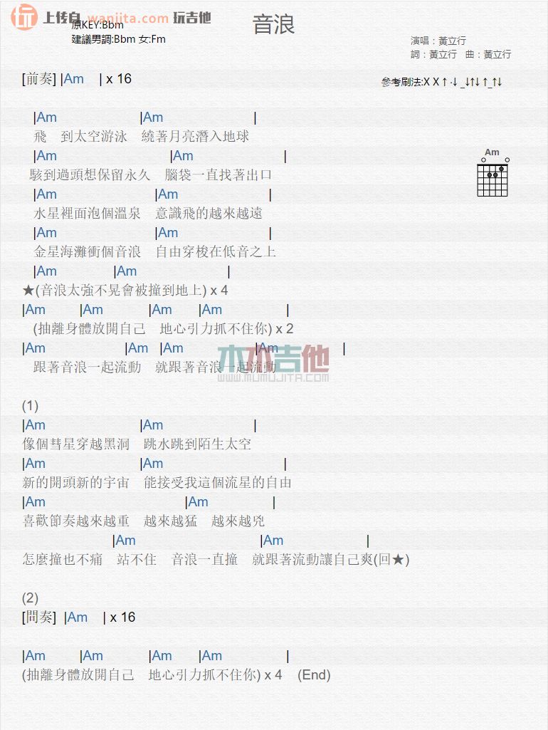 音浪吉他谱 - 黄立行 - 吉他弹唱谱