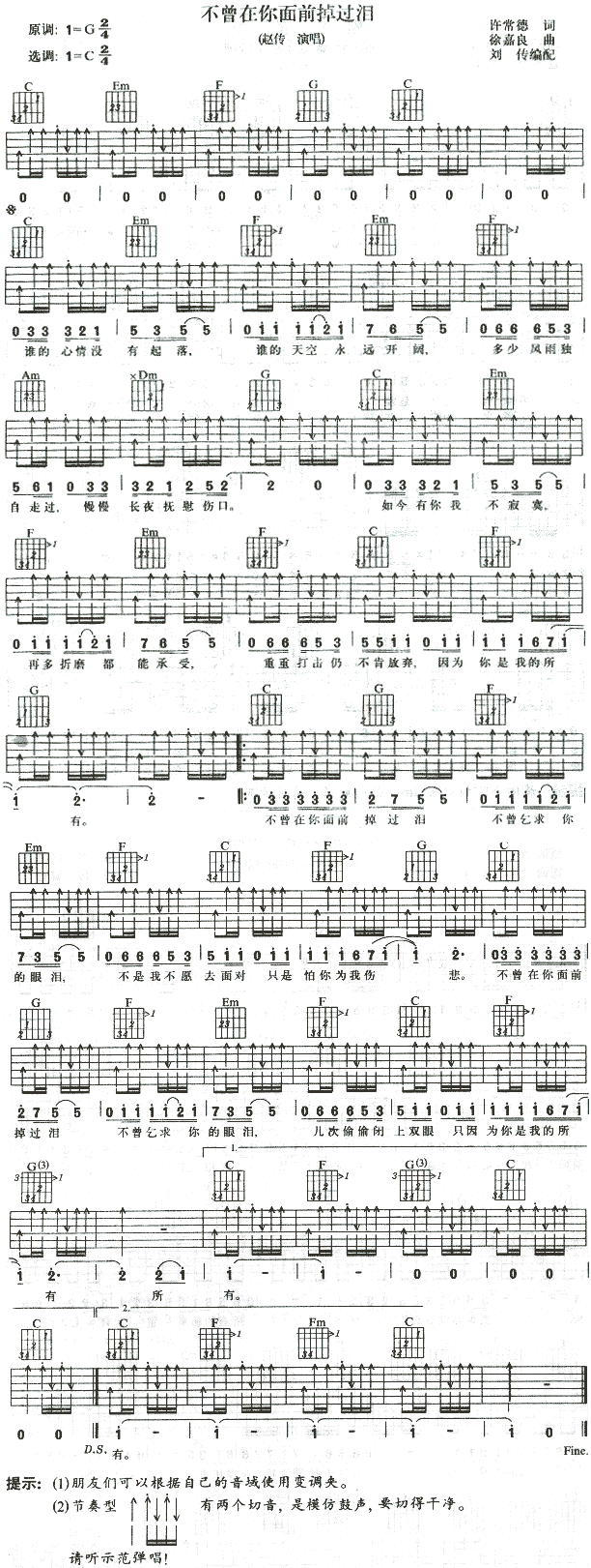 不曾在你面前掉过泪吉他谱 - 赵传 - C调吉他弹唱谱 - 原版