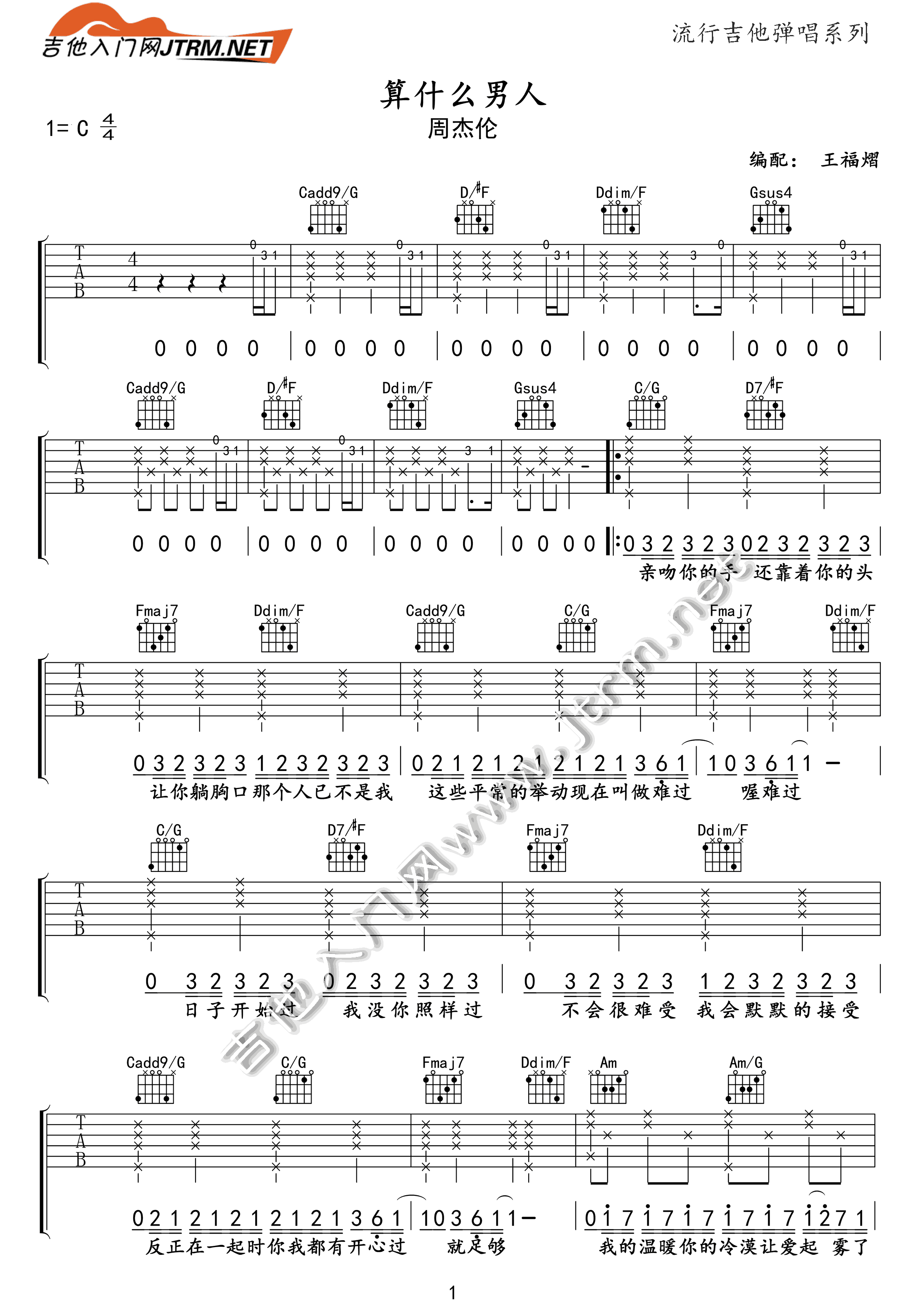 算什么男人吉他谱 - 周杰伦 - C调吉他弹唱谱 - 原版