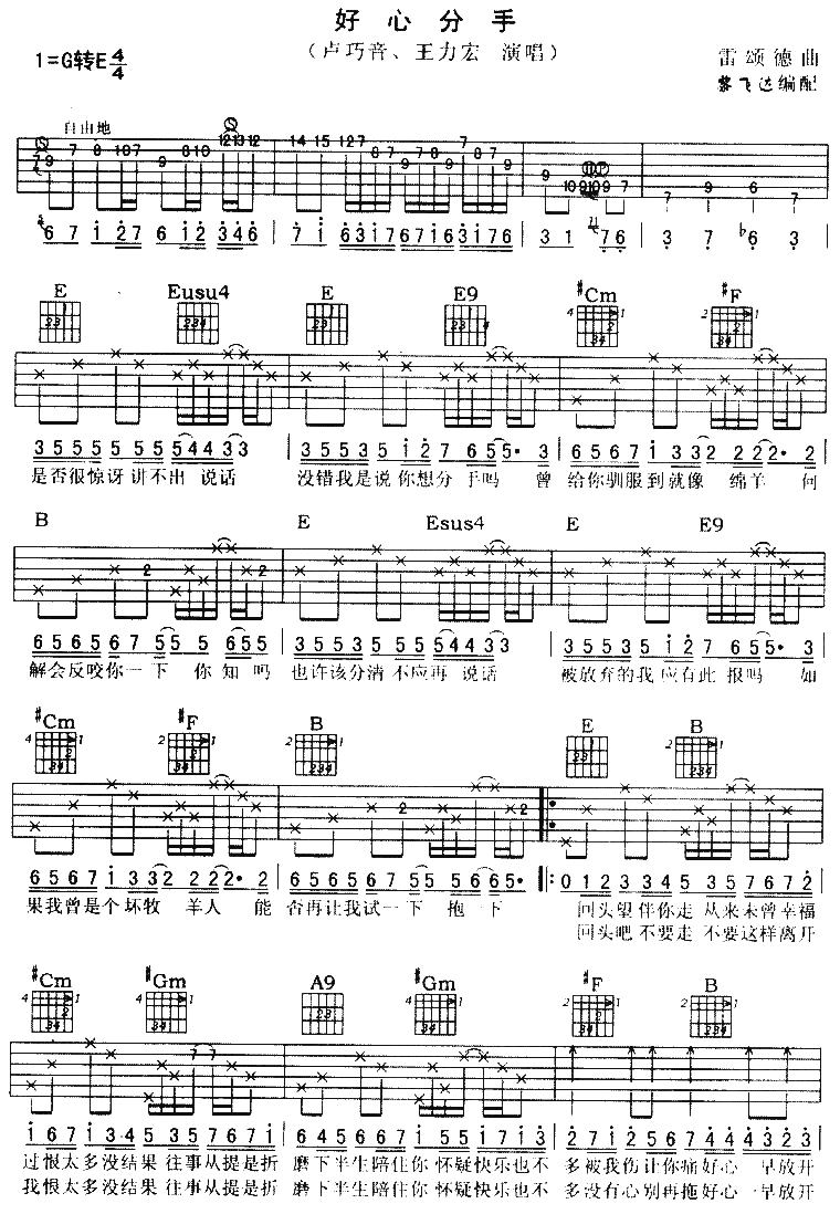 好心分手吉他谱 - 王力宏,卢巧音 - 吉他弹唱谱
