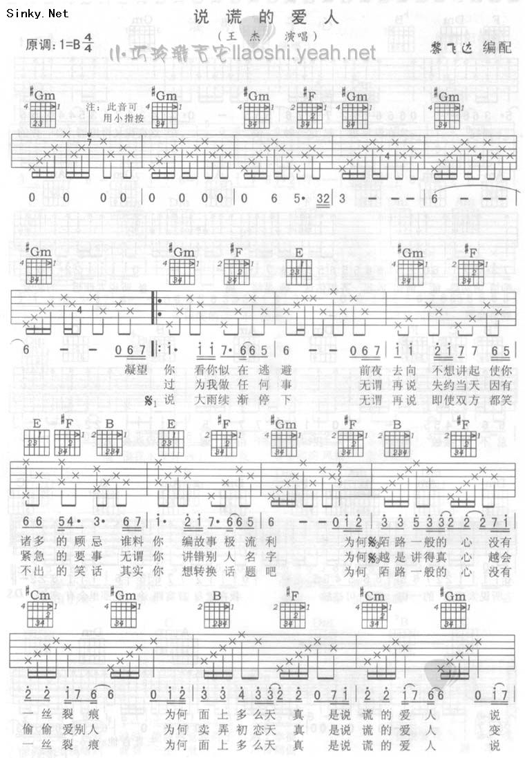 当前位置:琴谱网>吉他弹唱>说谎的爱人