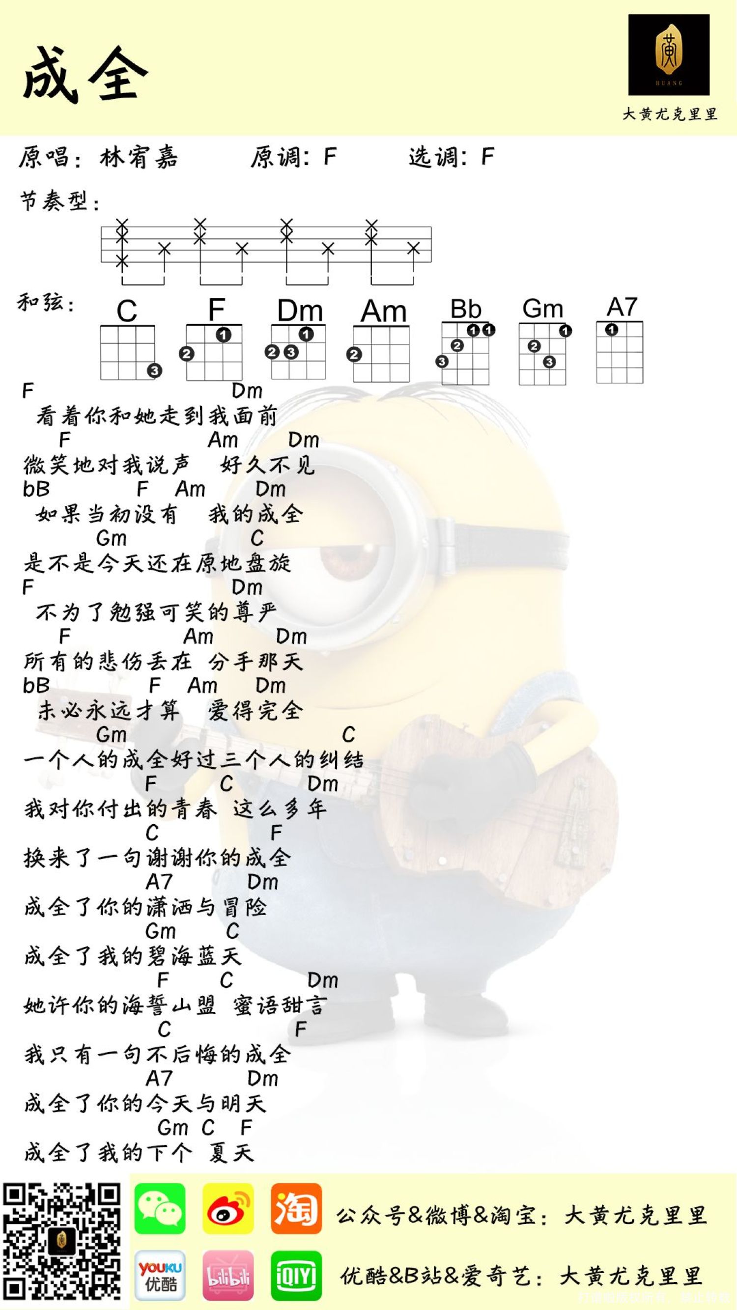 曲谱介绍: 《成全》尤克里里弹唱谱