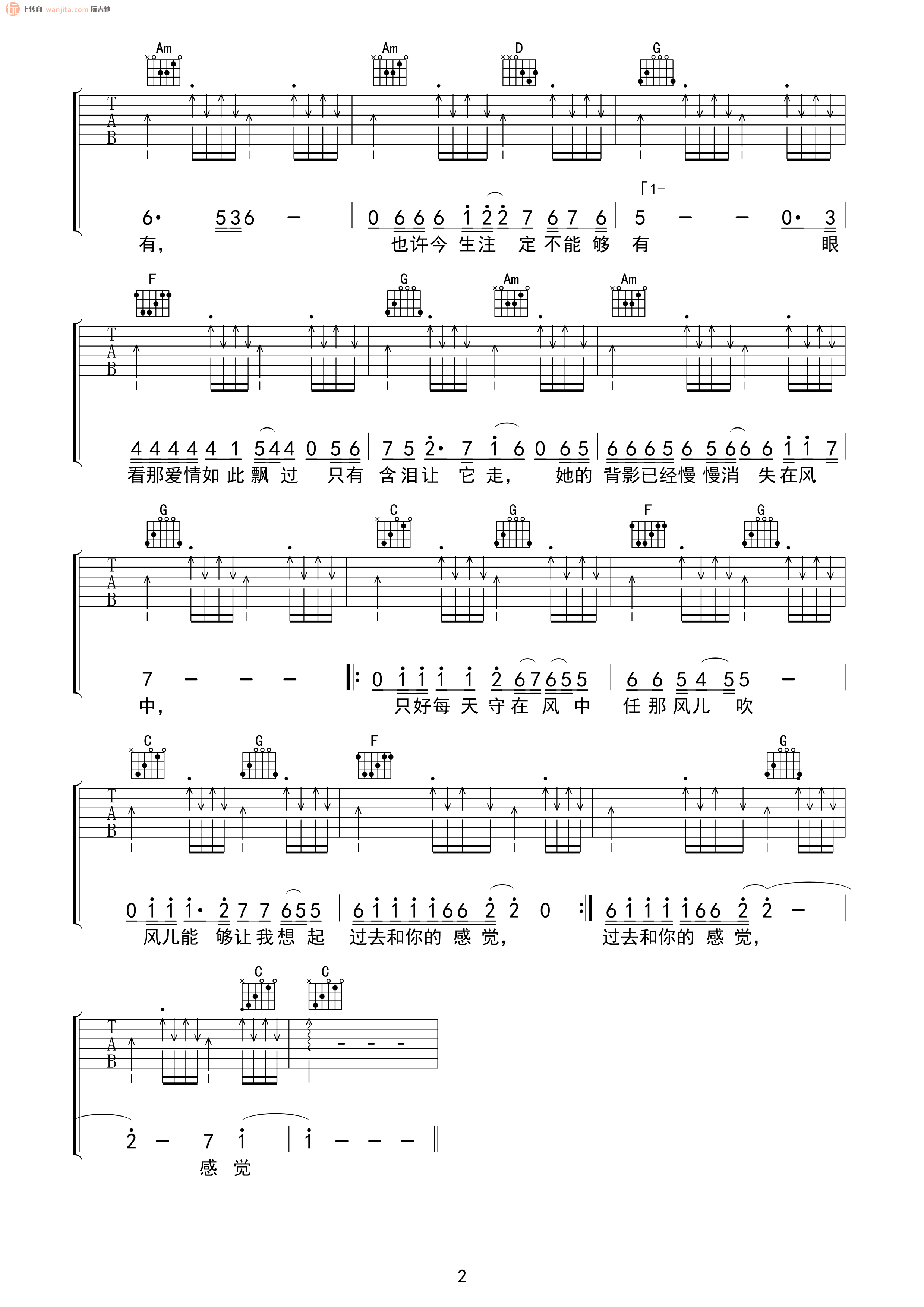 曲谱介绍: 《她的背影》吉他谱,总共2高清图片谱,选用C调指法,节拍4/4拍,不使用变调夹,弹唱难度初级。