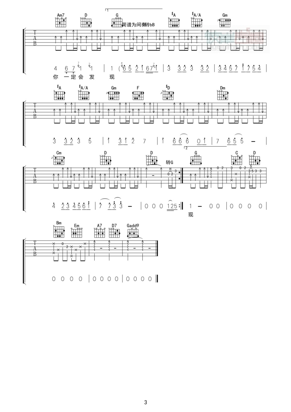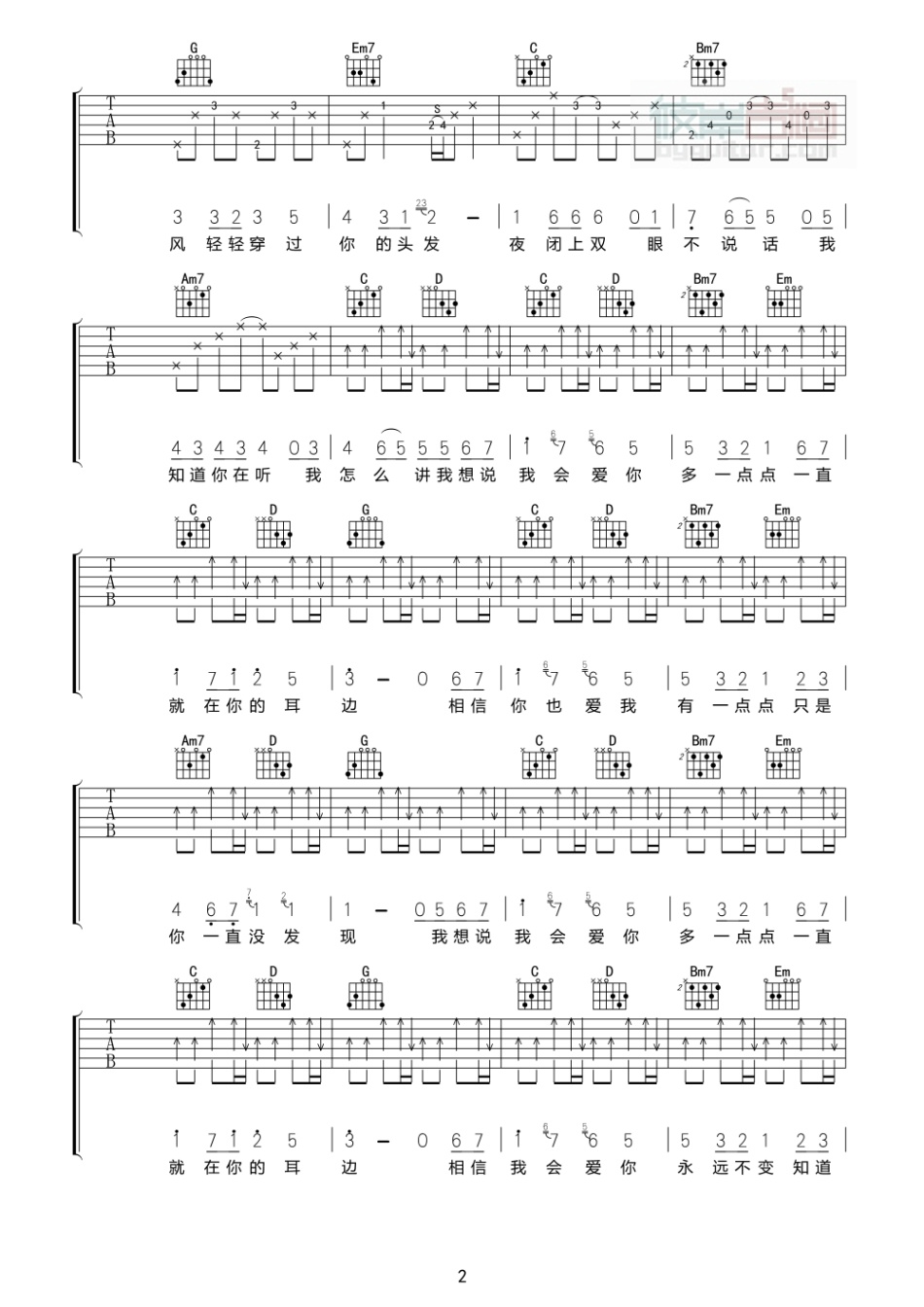 曲谱介绍: 《爱一点》吉他谱,总共3高清图片谱,原调为升G调,选用G调指法,节拍4/4拍,建议使用变调夹夹1品,弹唱难度初级。