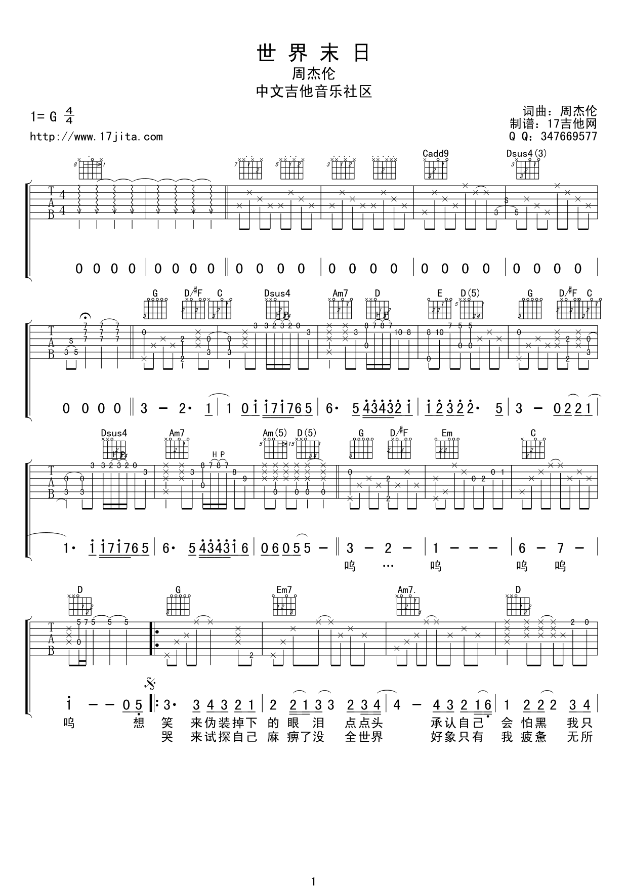 世界末日吉他谱 - 周杰伦 - G调吉他弹唱谱