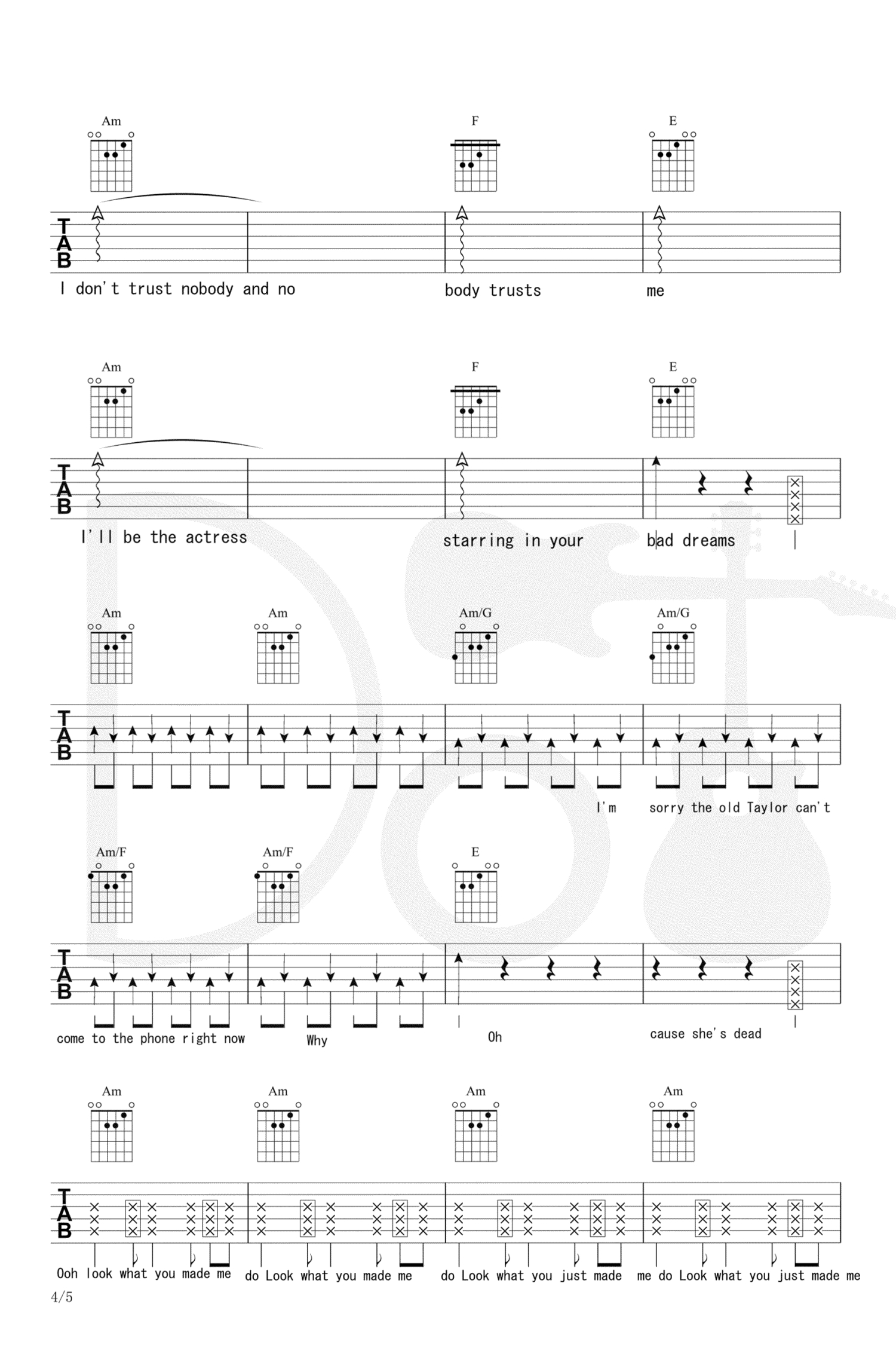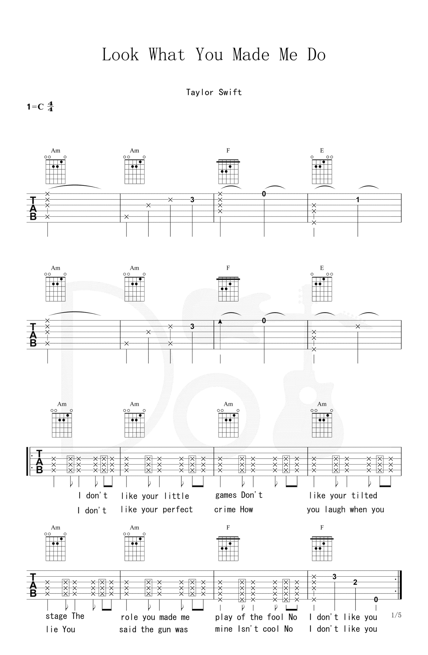 Look What You Made Me Do吉他谱 - Taylor Swift - C调吉他弹唱谱
