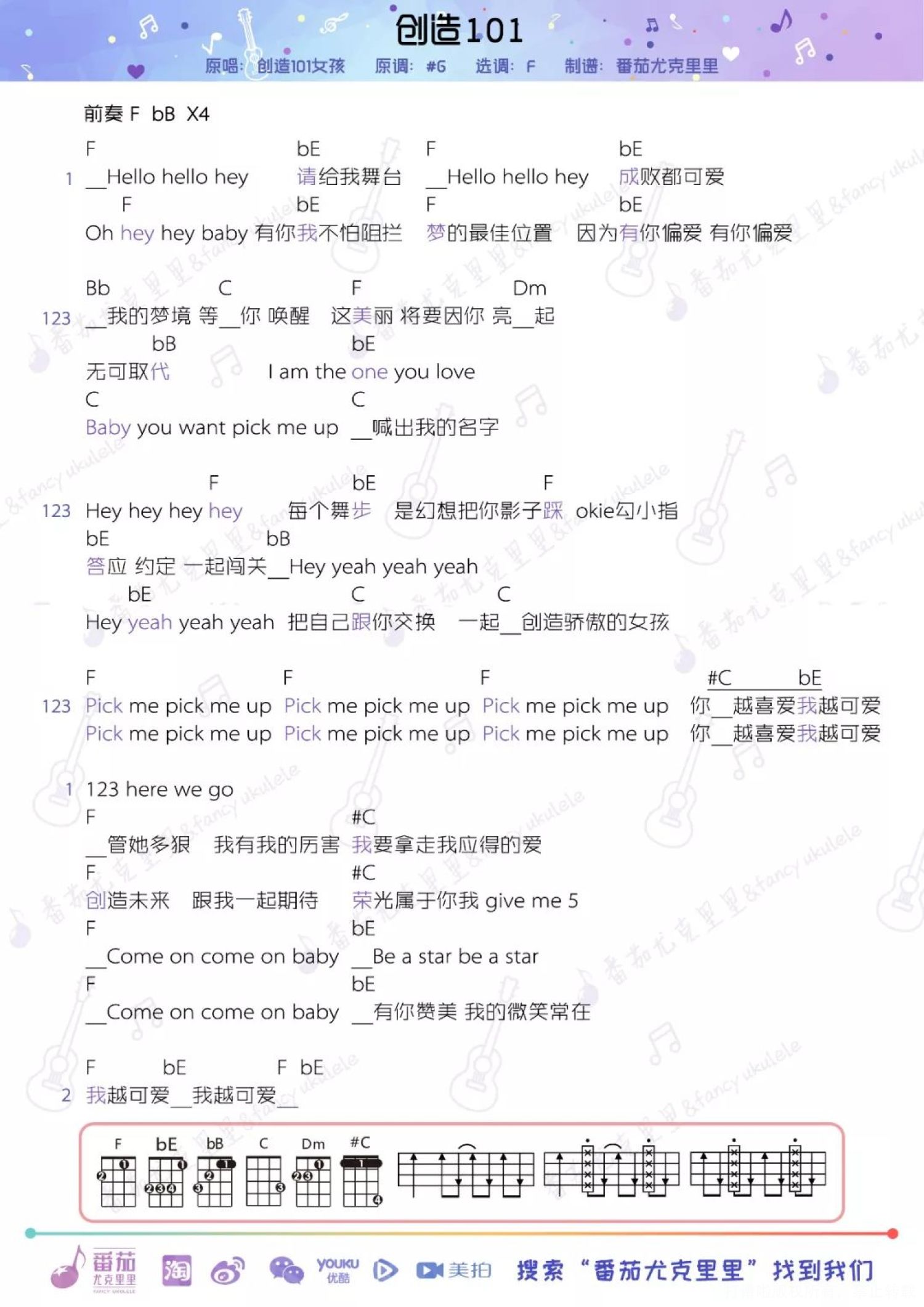 曲谱介绍: 《创造101》尤克里里弹唱谱