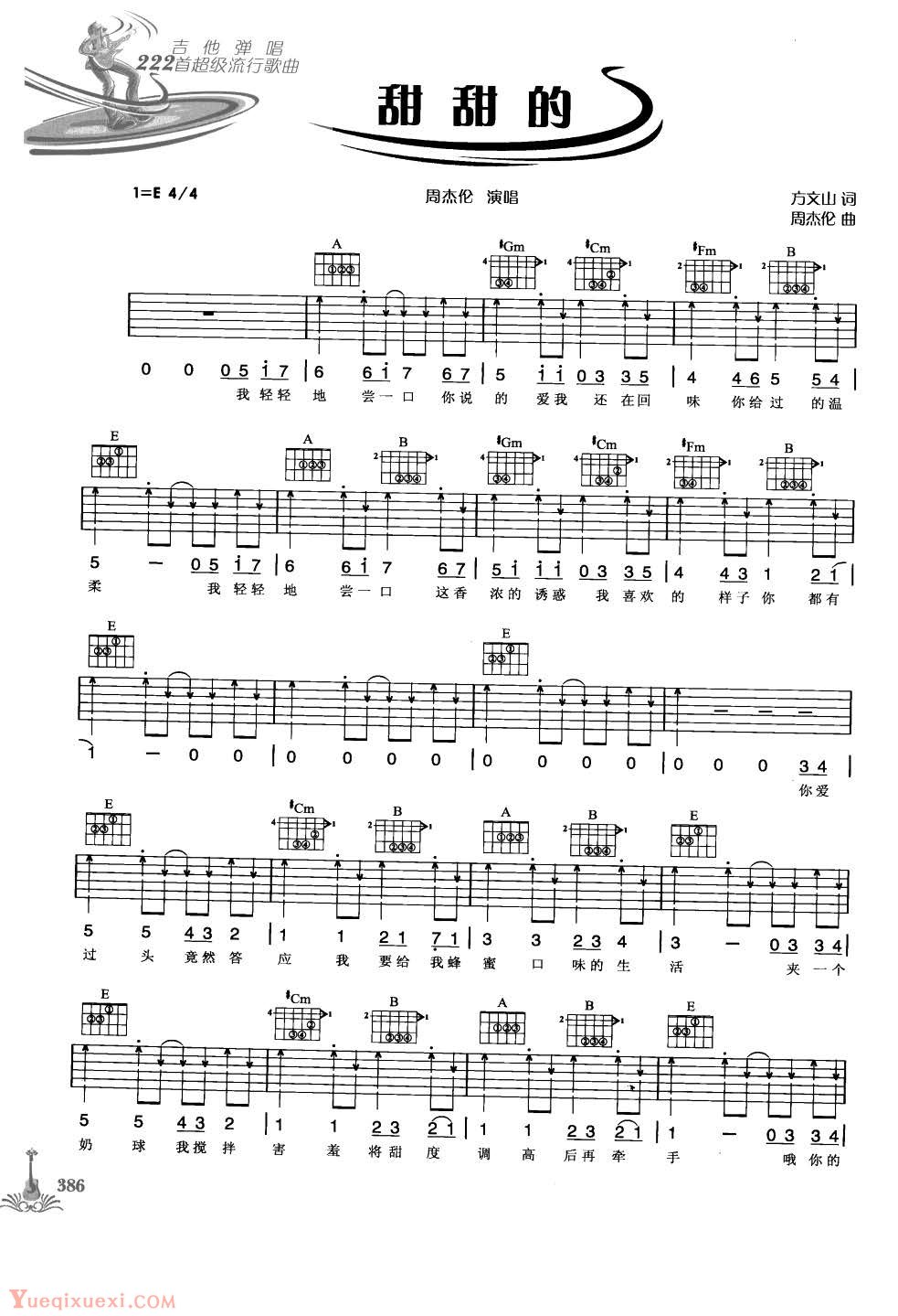 甜甜的吉他谱 - 周杰伦 - E调吉他弹唱谱
