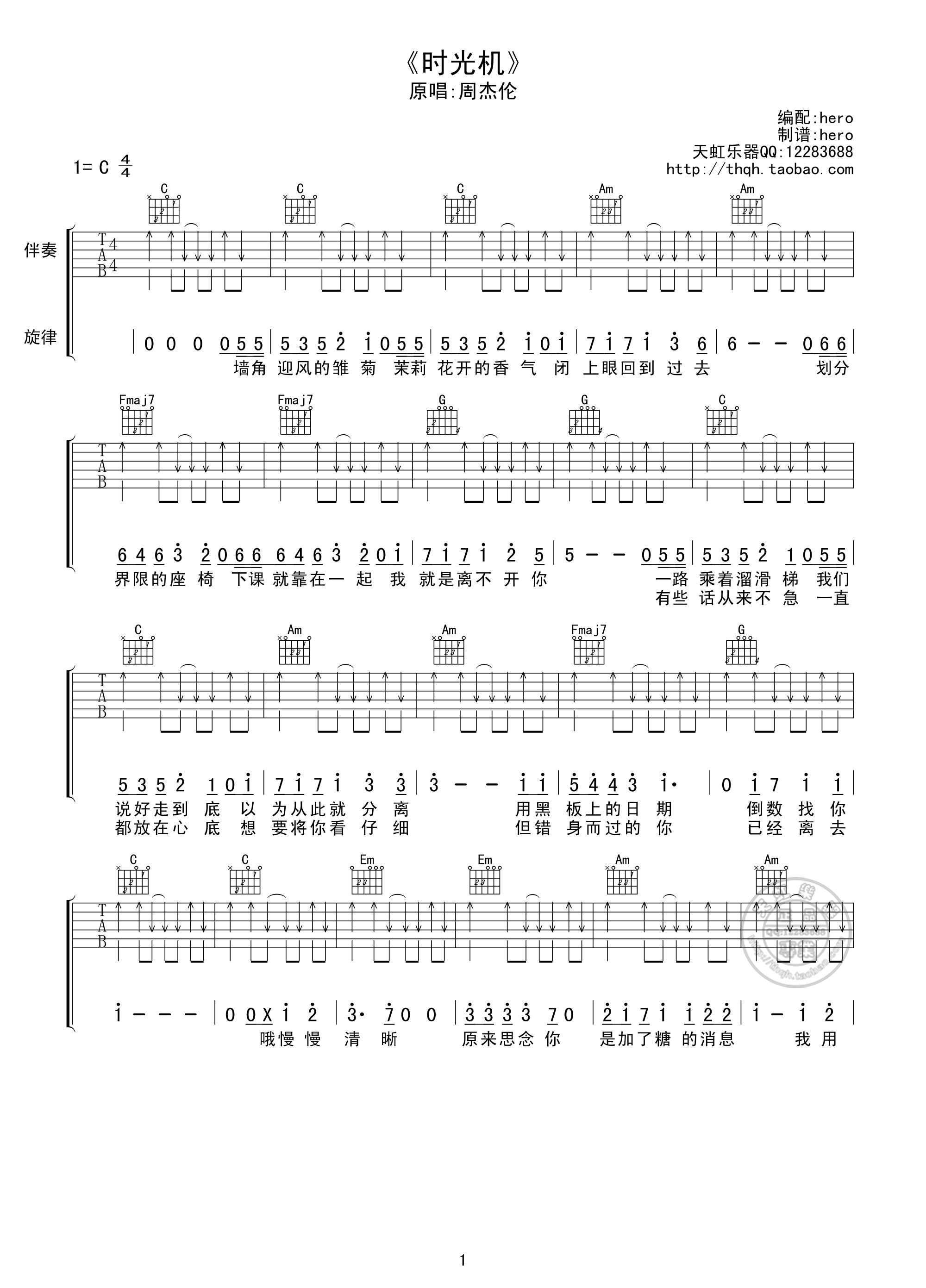 时光机吉他谱 - 周杰伦 - C调吉他弹唱谱