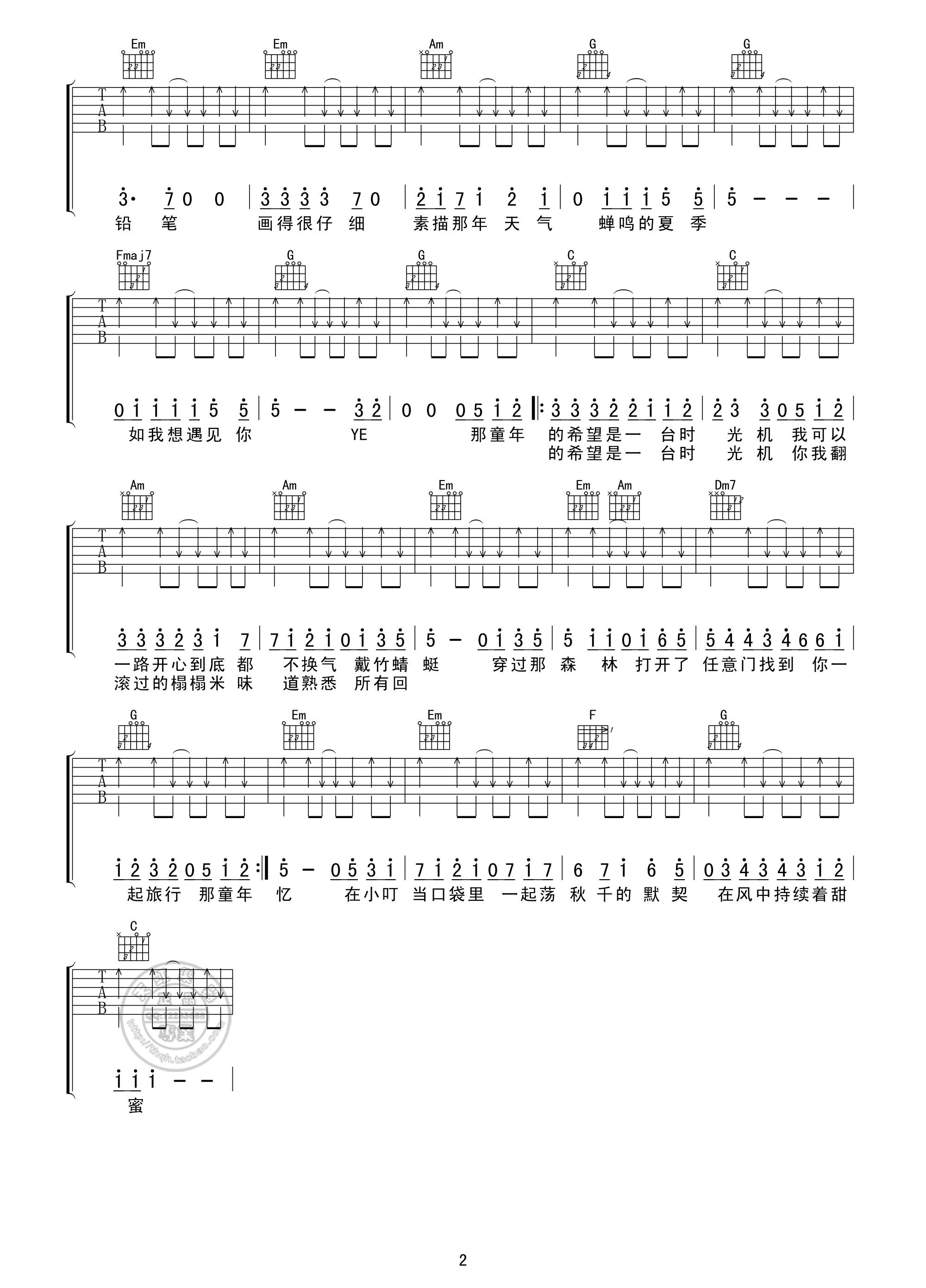 曲谱介绍: 《时光机》吉他谱,总共2张高清图片谱,选用C调指法,节拍4/4拍,不使用变调夹,弹唱难度初级。