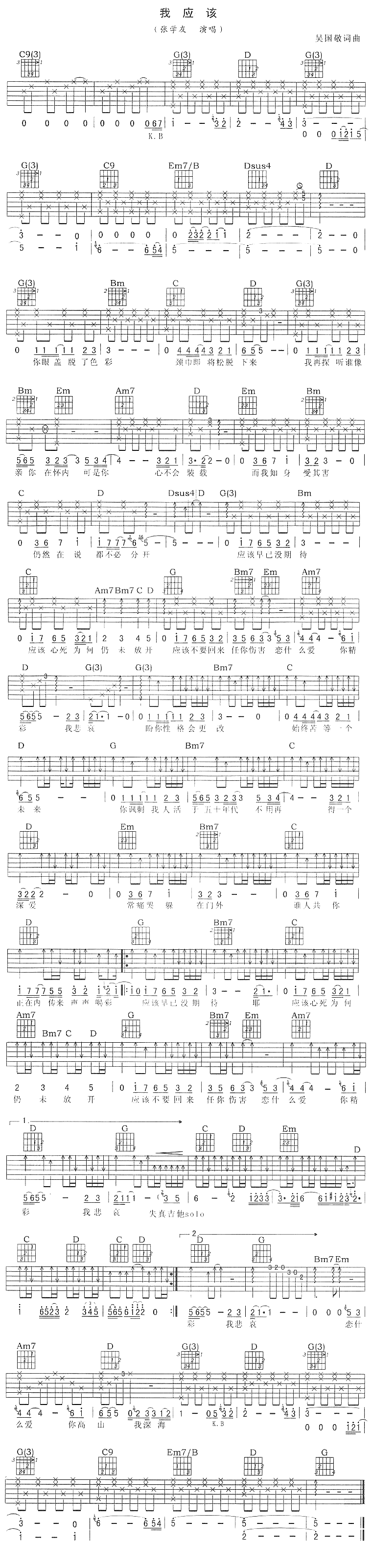 我应该吉他谱 - 张学友 - 吉他弹唱谱