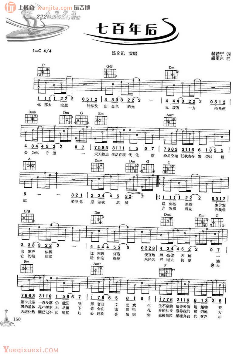七百年后吉他谱 - 陈奕迅 - C调吉他弹唱谱