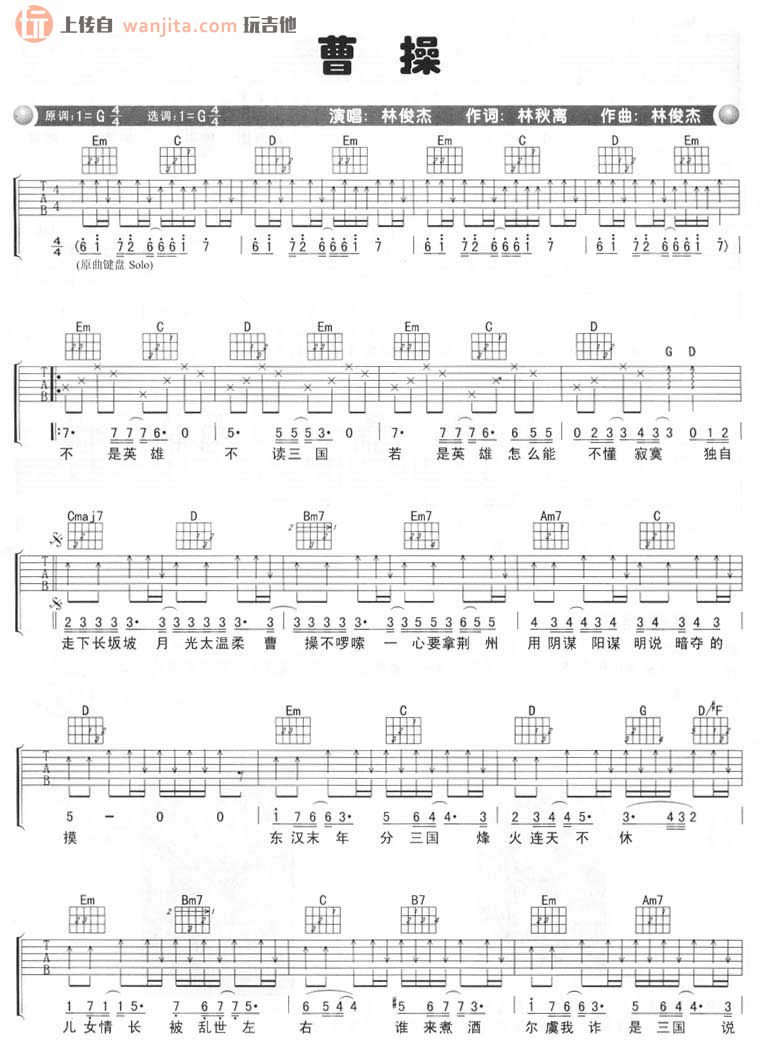曹操吉他谱 - 林俊杰 - G调吉他弹唱谱