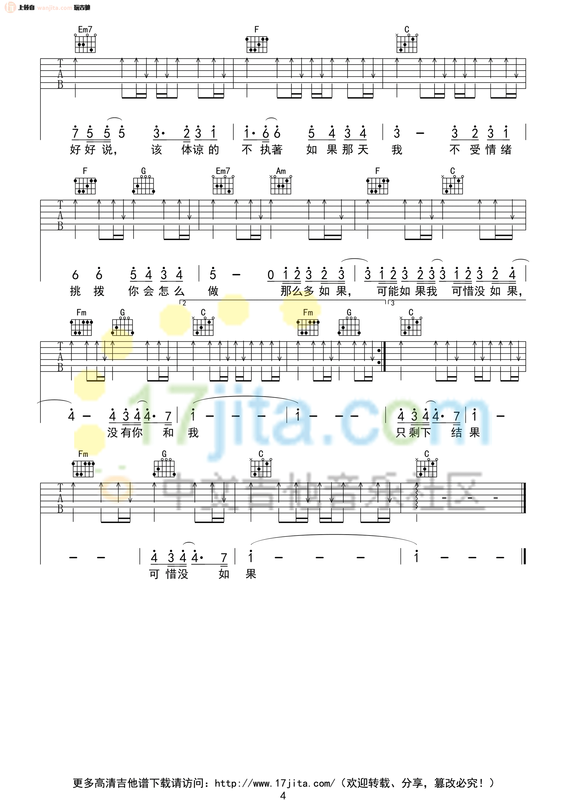 当前位置:琴谱网>吉他弹唱>可惜没如果