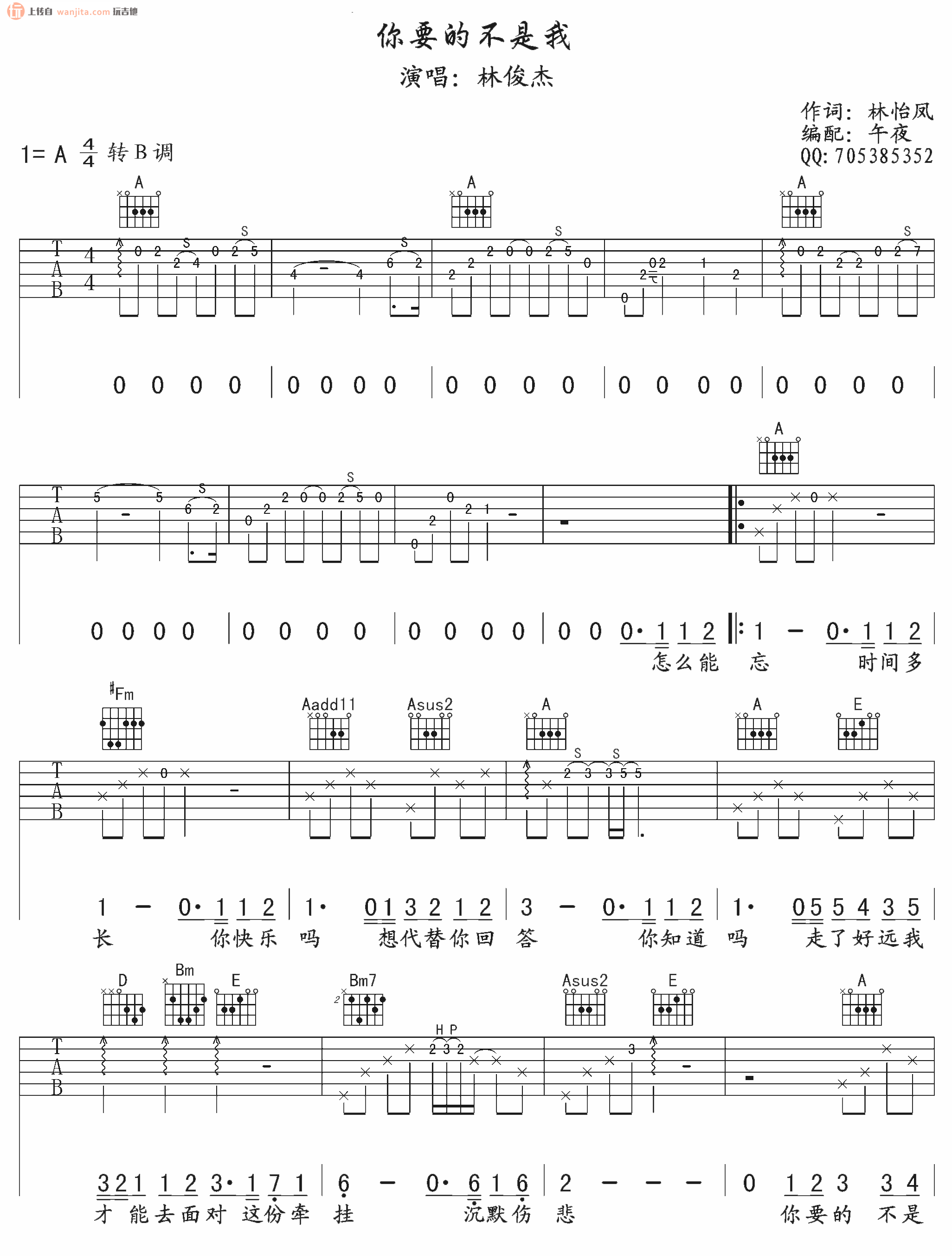 你要的不是我吉他谱 - 林俊杰 - 吉他弹唱谱