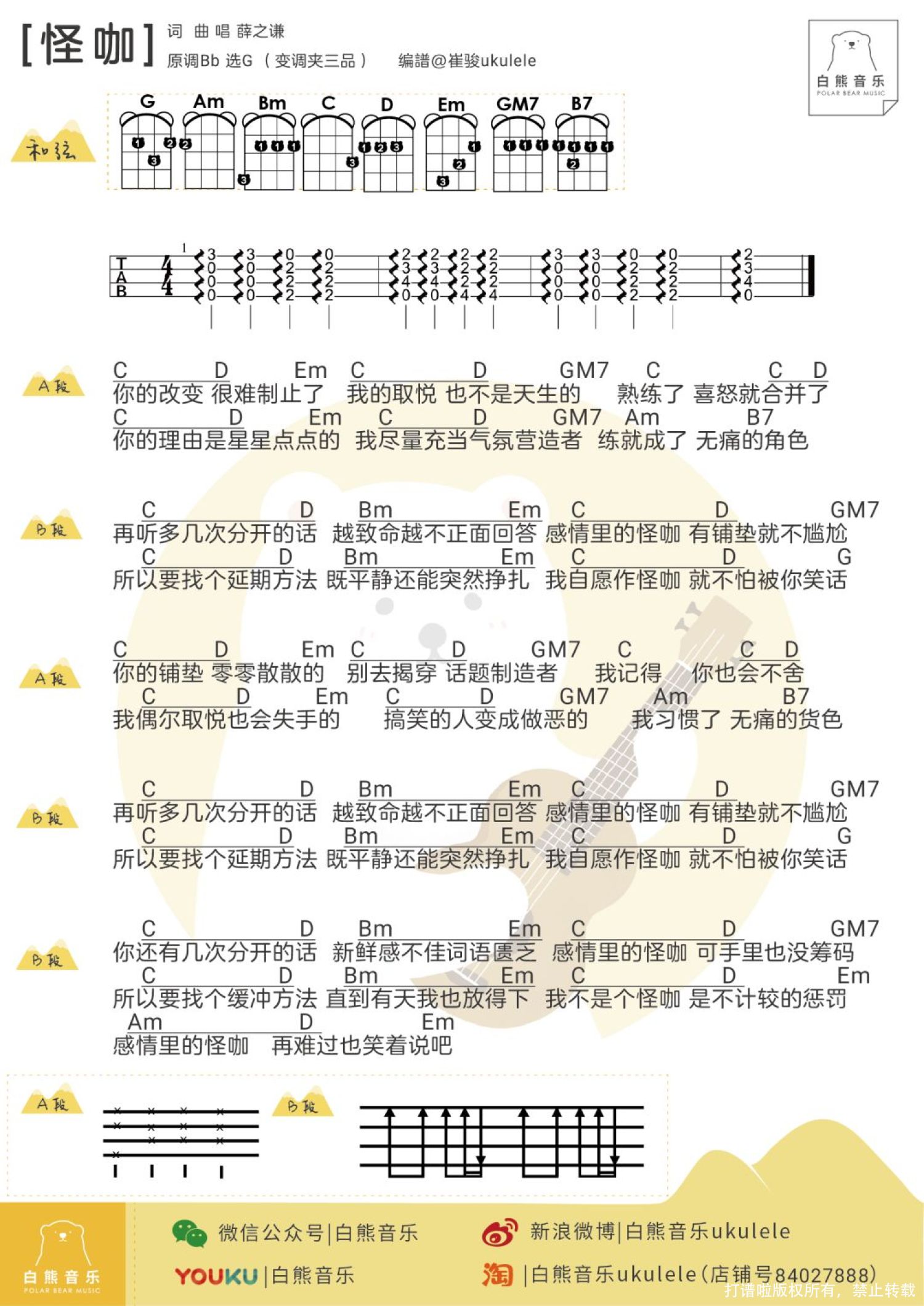 曲谱介绍: 《怪咖》尤克里里弹唱谱