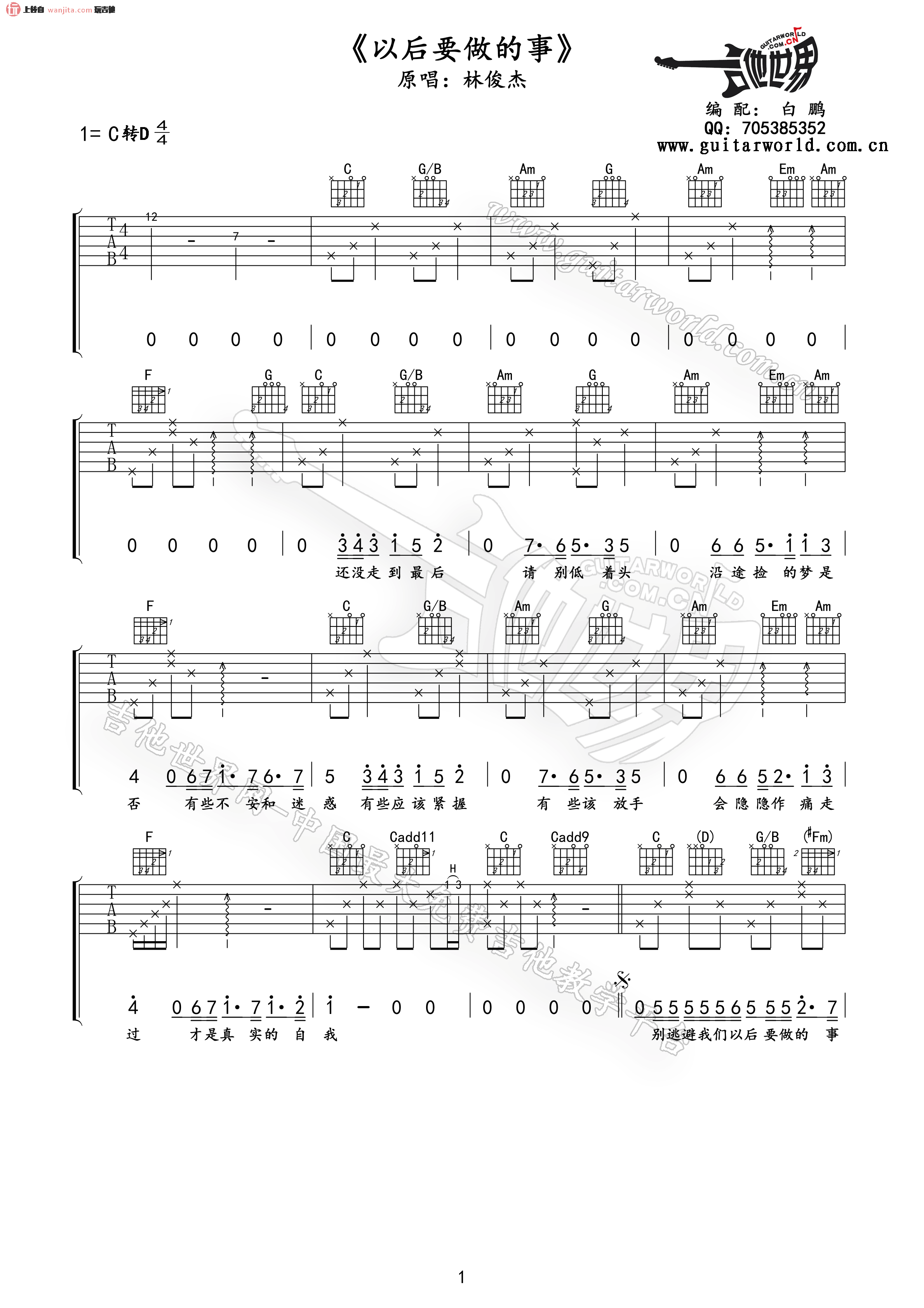 以后要做的事吉他谱 - 林俊杰 - 吉他弹唱谱