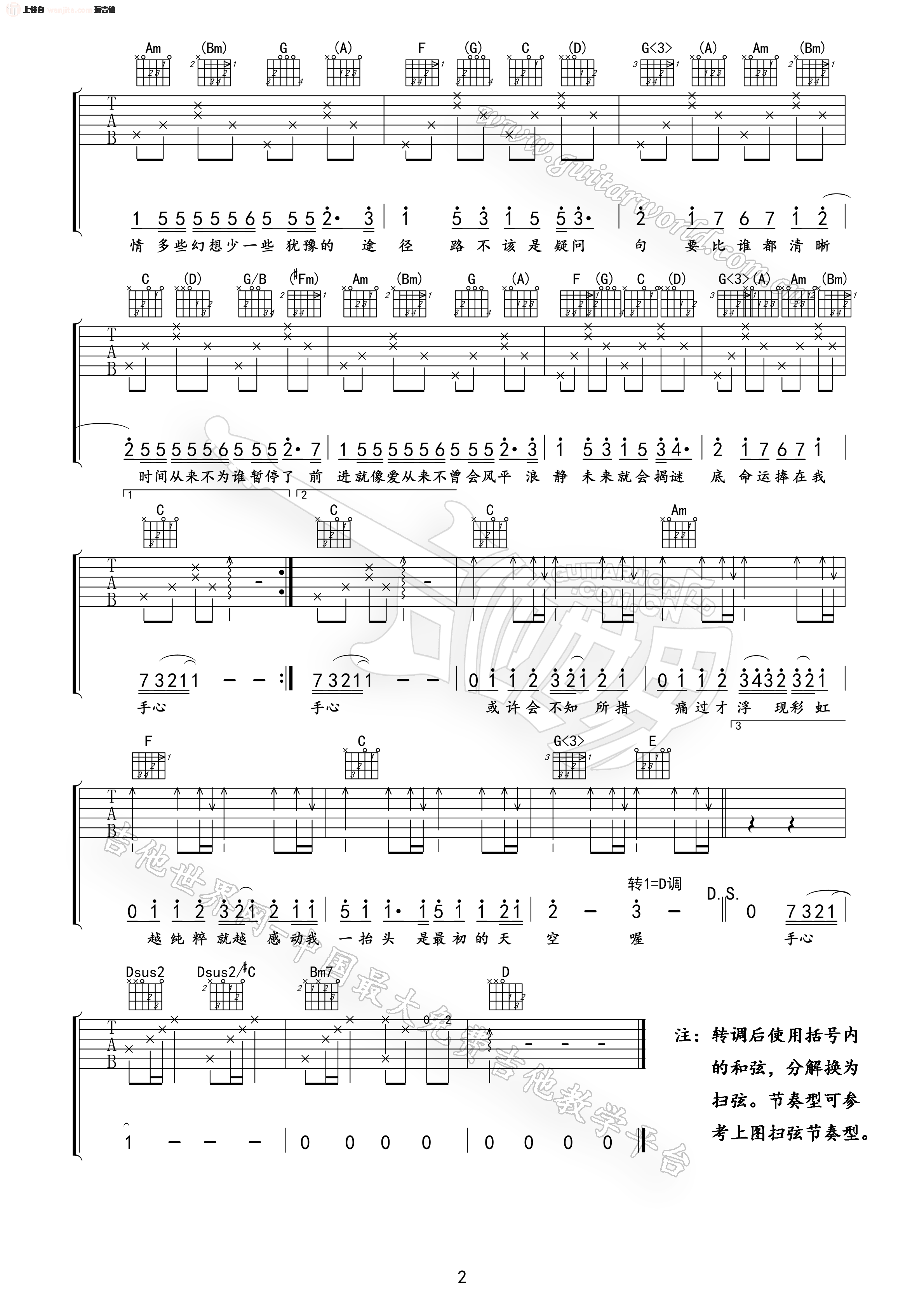 曲谱介绍: 林俊杰的以后要做的事吉他谱,选用C转D调进行编配,转调后使用括号内的和弦,分解转为扫弦。节奏型可参考上图扫弦节奏型。