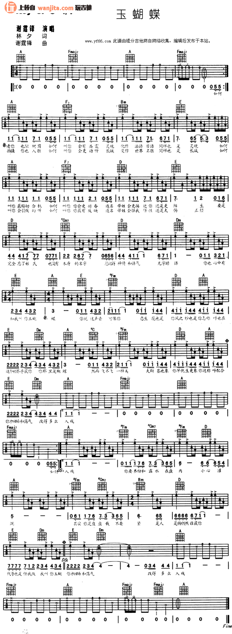 玉蝴蝶吉他谱 - 谢霆锋 - 吉他弹唱谱