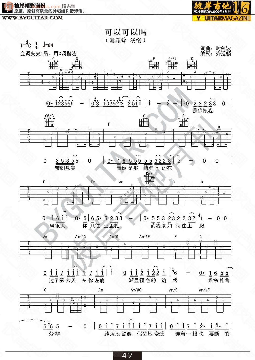 曲谱介绍: 谢霆锋《可以可以吗》吉他弹唱谱,共有2张高清图谱,免翻页排版设计。