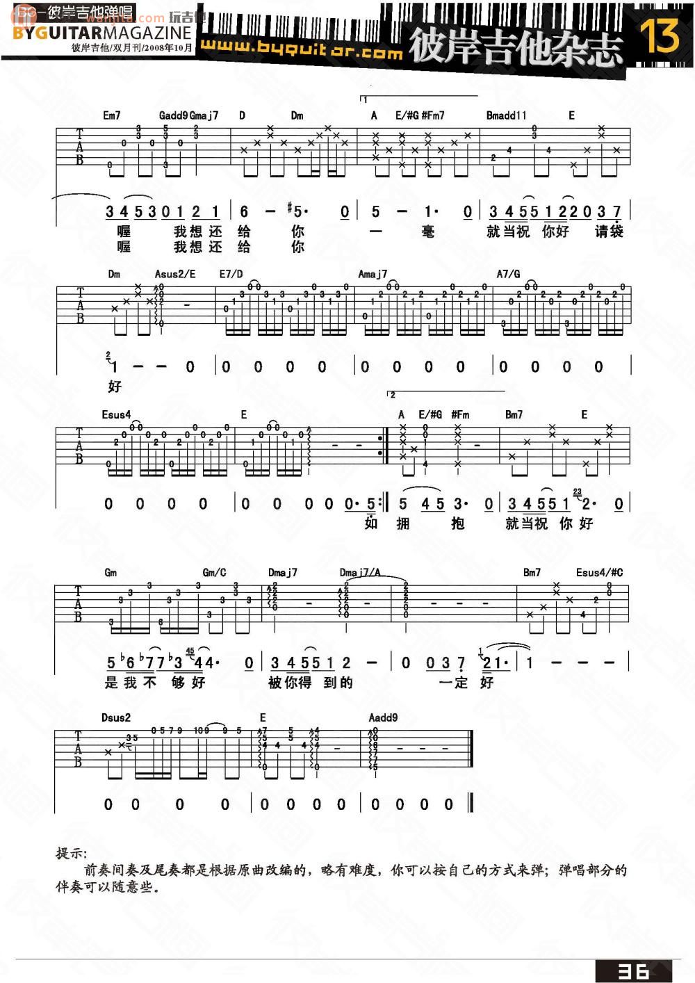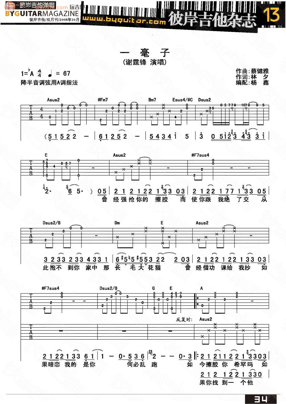 当前位置:琴谱网>吉他弹唱>一毫子