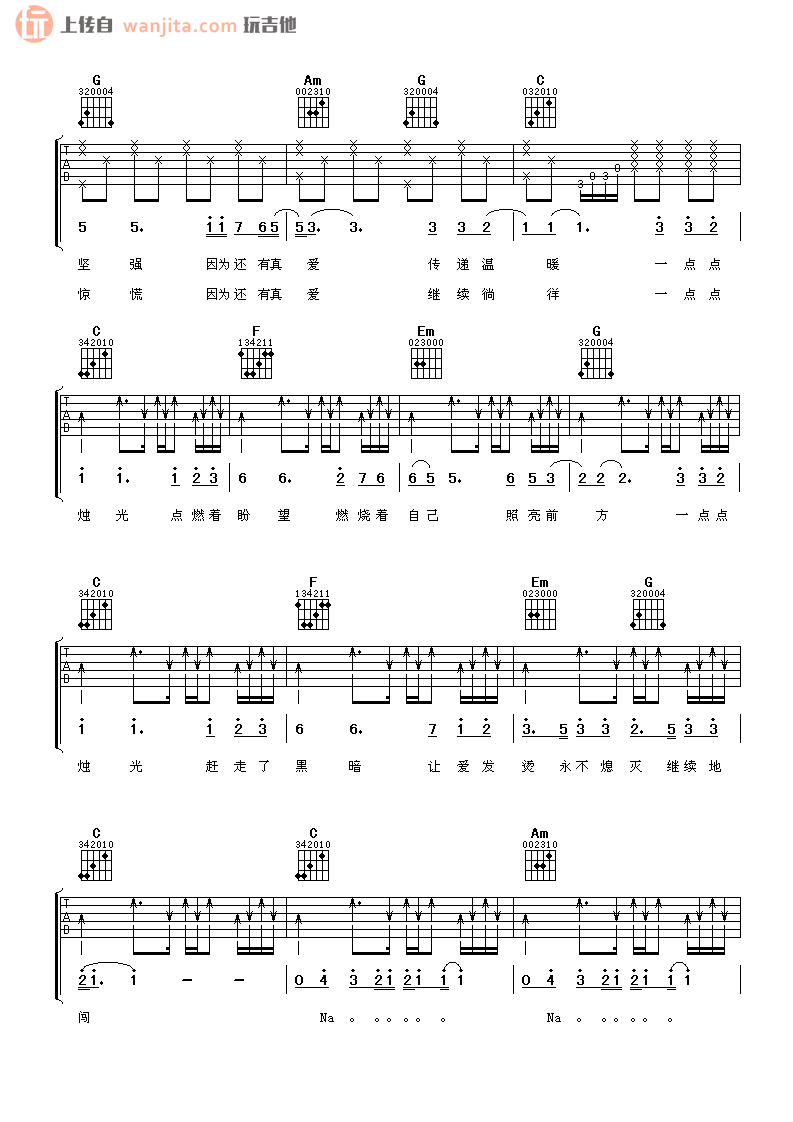 烛光吉他谱 - 谢霆锋 - C调吉他弹唱谱