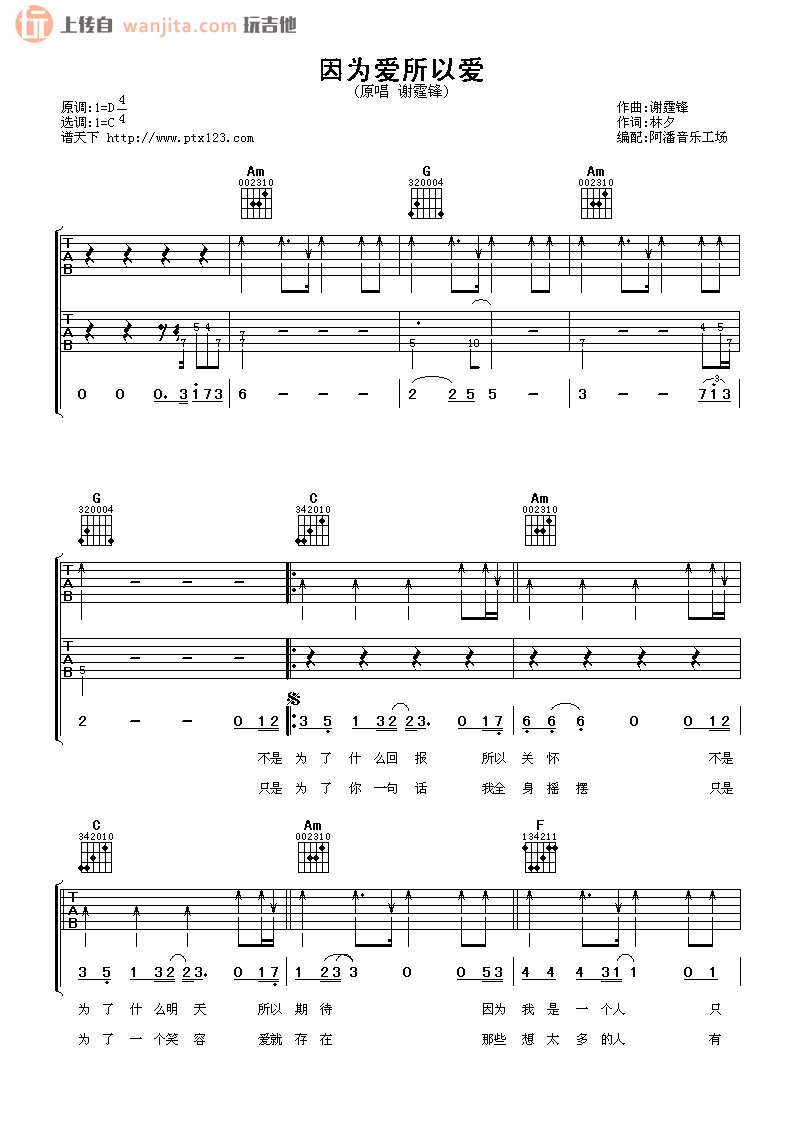 因为爱所以爱吉他谱 - 谢霆锋 - 吉他弹唱谱