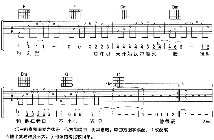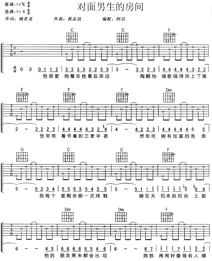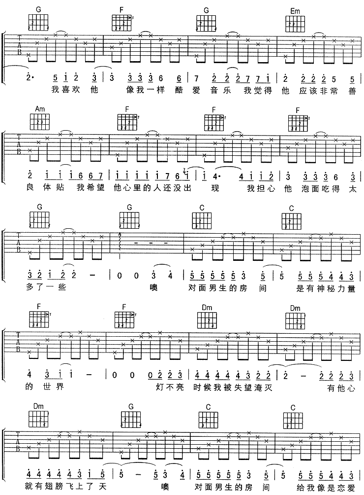 当前位置:琴谱网>吉他弹唱>对面男生的房间