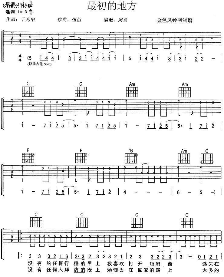 当前位置:琴谱网>吉他弹唱>最初的地方