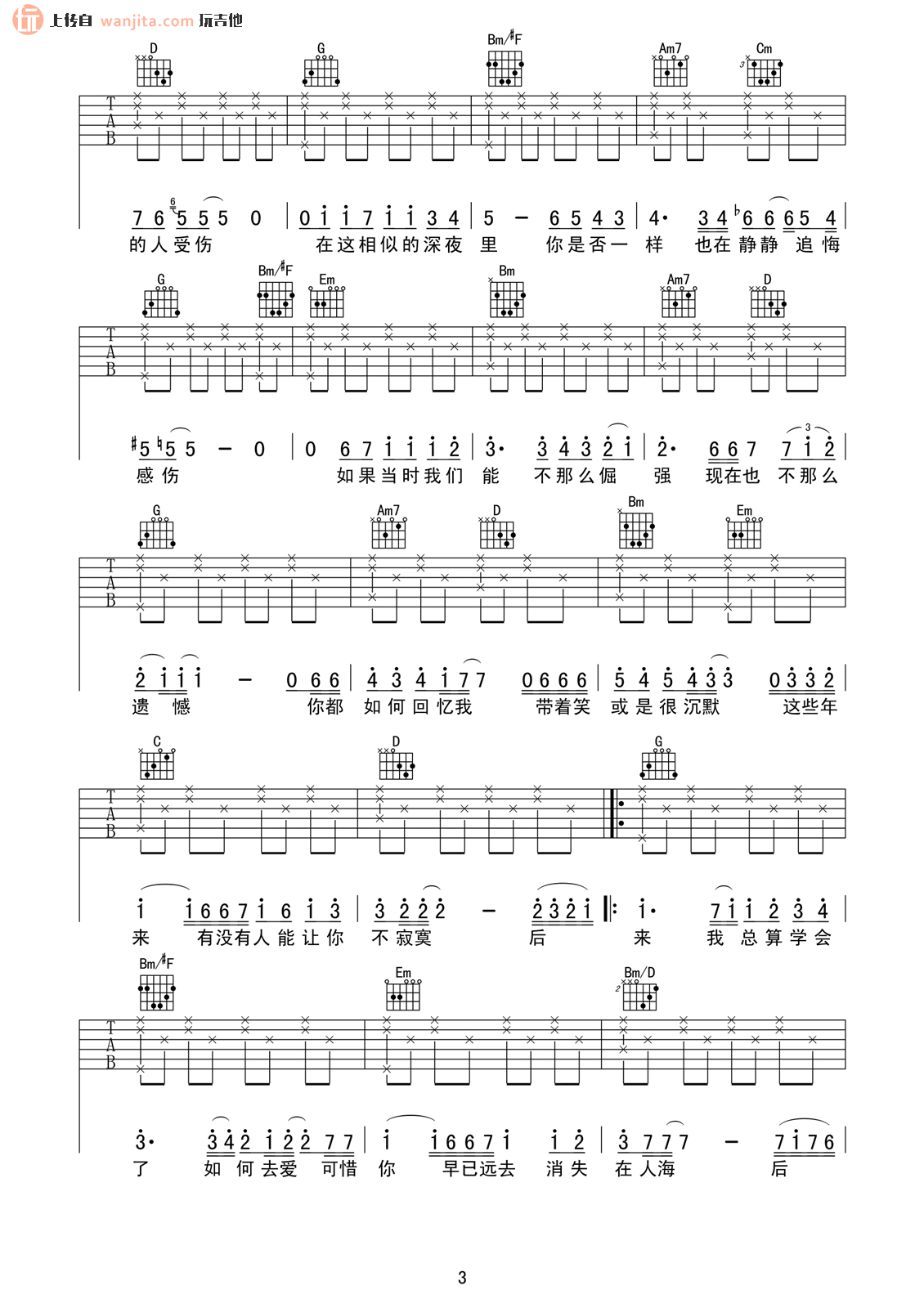 当前位置:琴谱网>吉他弹唱>后来