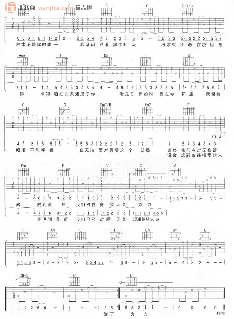 曲谱介绍: 《无能为力》吉他谱,总共2张高清图片谱,原调为C调,选用C调指法,节拍4/4拍,不使用变调夹,弹唱难度初级。