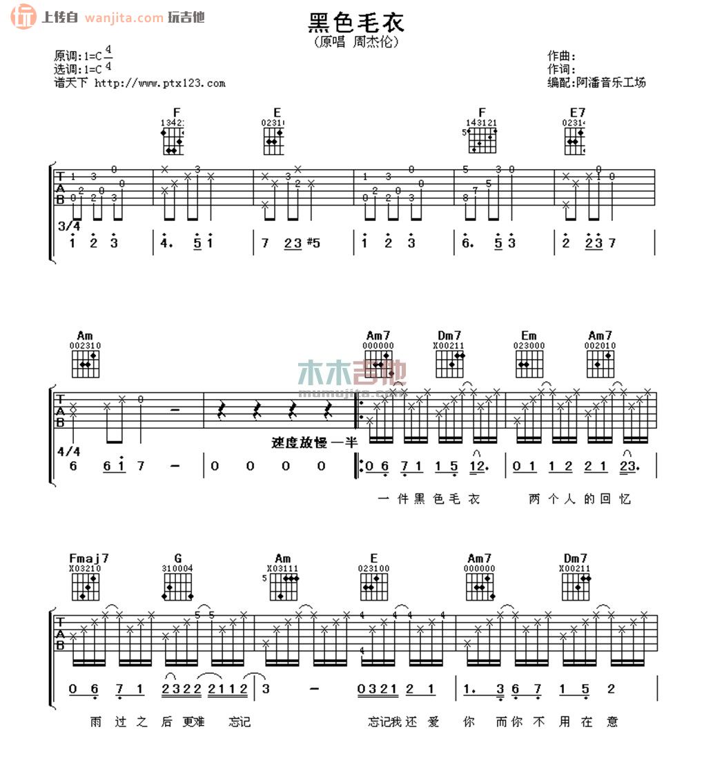 黑色毛衣吉他谱 - 周杰伦 - C调吉他弹唱谱