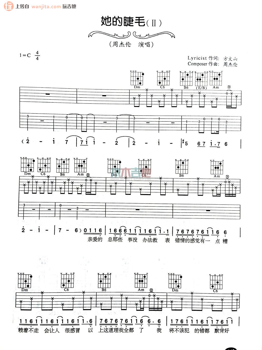 她的睫毛吉他谱 - 周杰伦 - 吉他弹唱谱