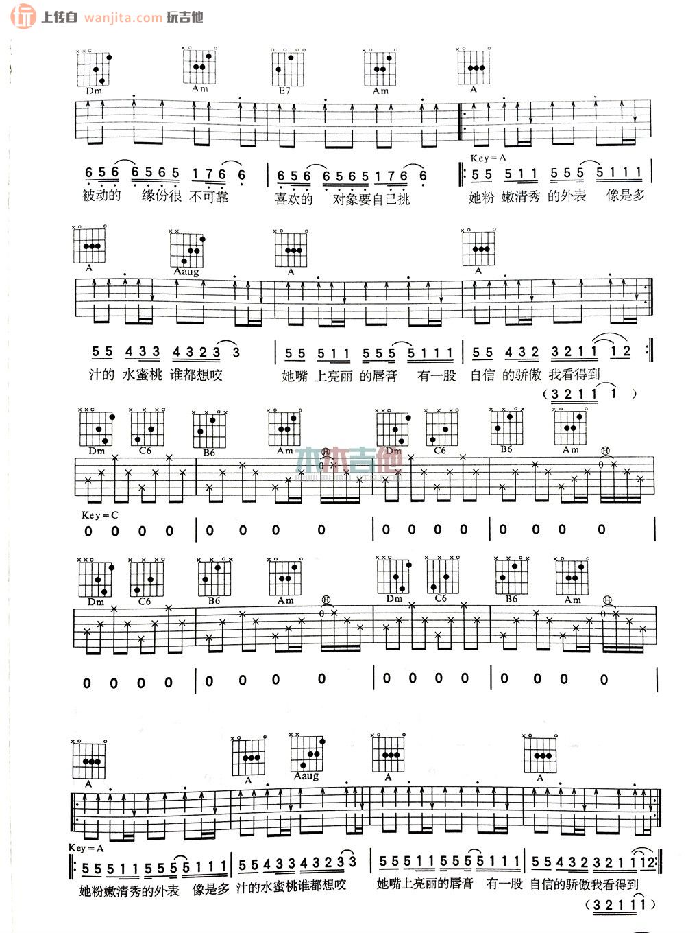 当前位置:琴谱网>吉他弹唱>她的睫毛