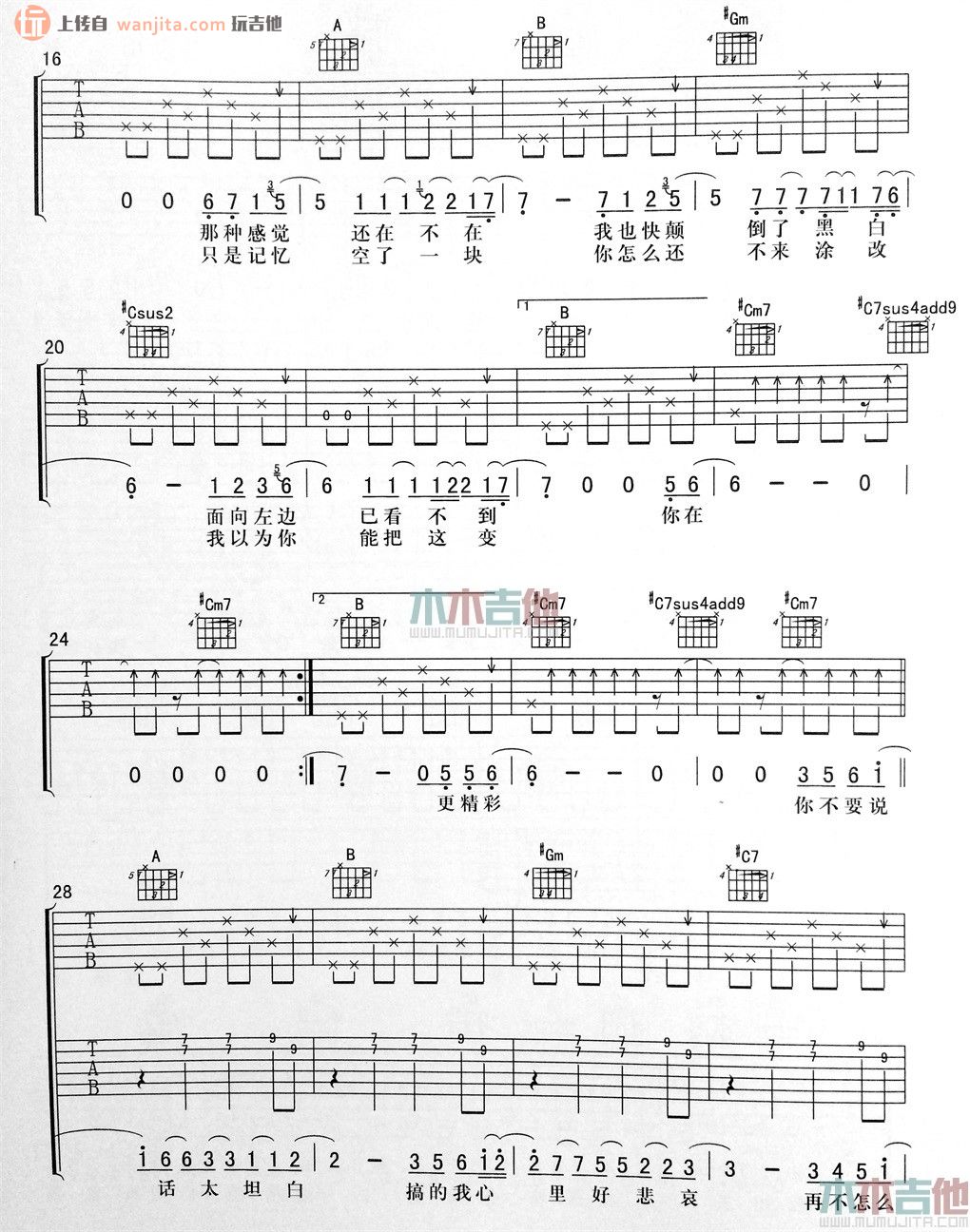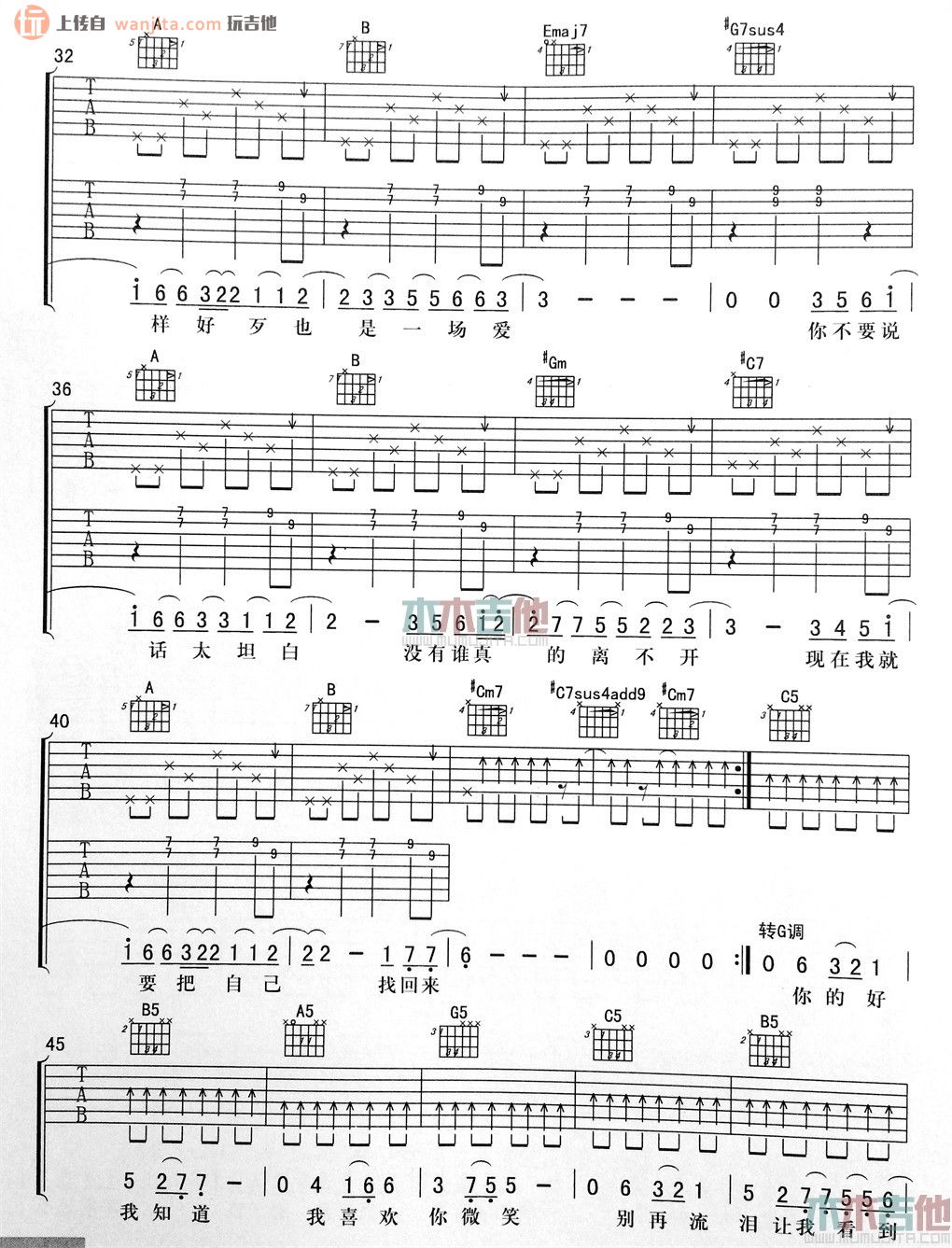 当前位置:琴谱网>吉他弹唱>太坦白