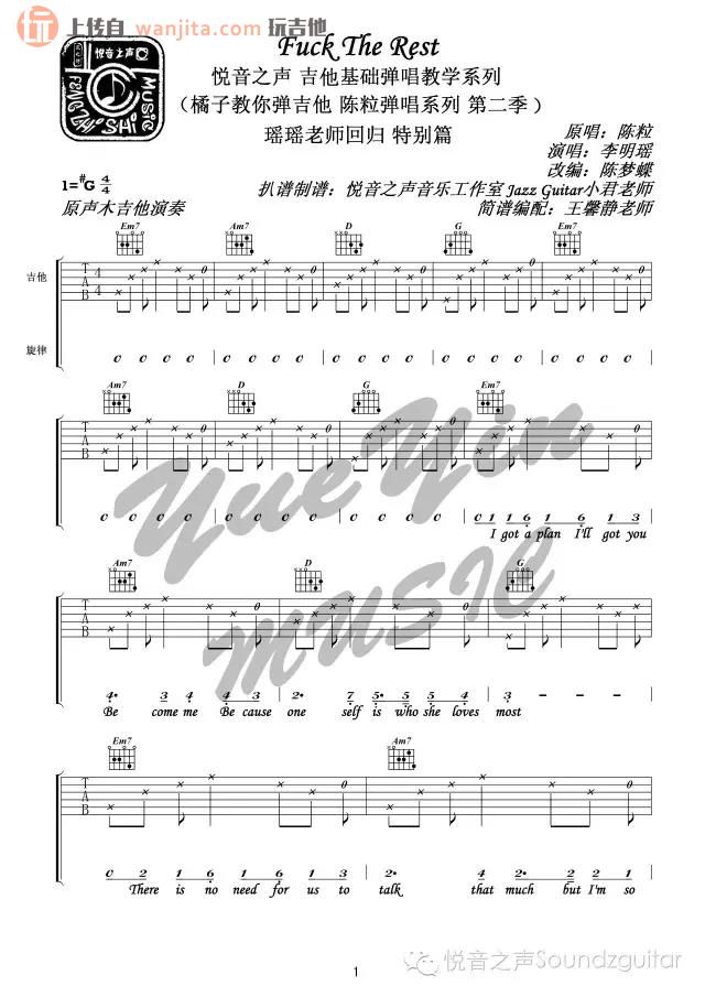 FUCK THE REST_陈粒_G调原版六线吉他谱 - FUCK - G调吉他弹唱谱 - 原版