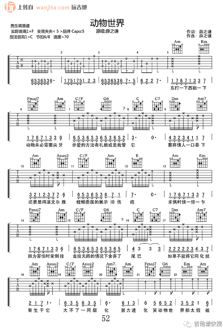 动物世界吉他谱 - 薛之谦 - C调吉他弹唱谱 - 原版