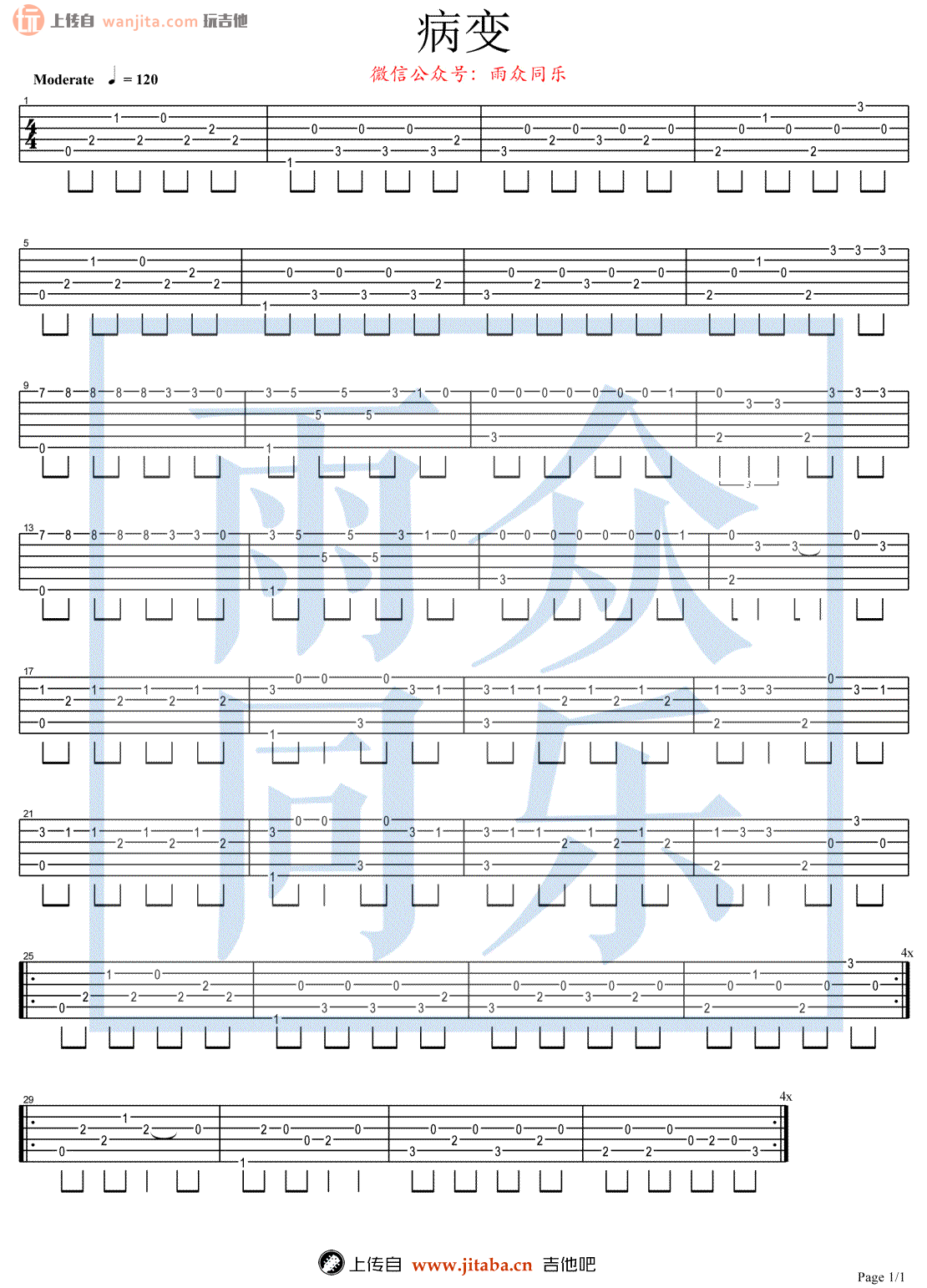 当前位置:琴谱网>吉他独奏>BINGBIAN病变