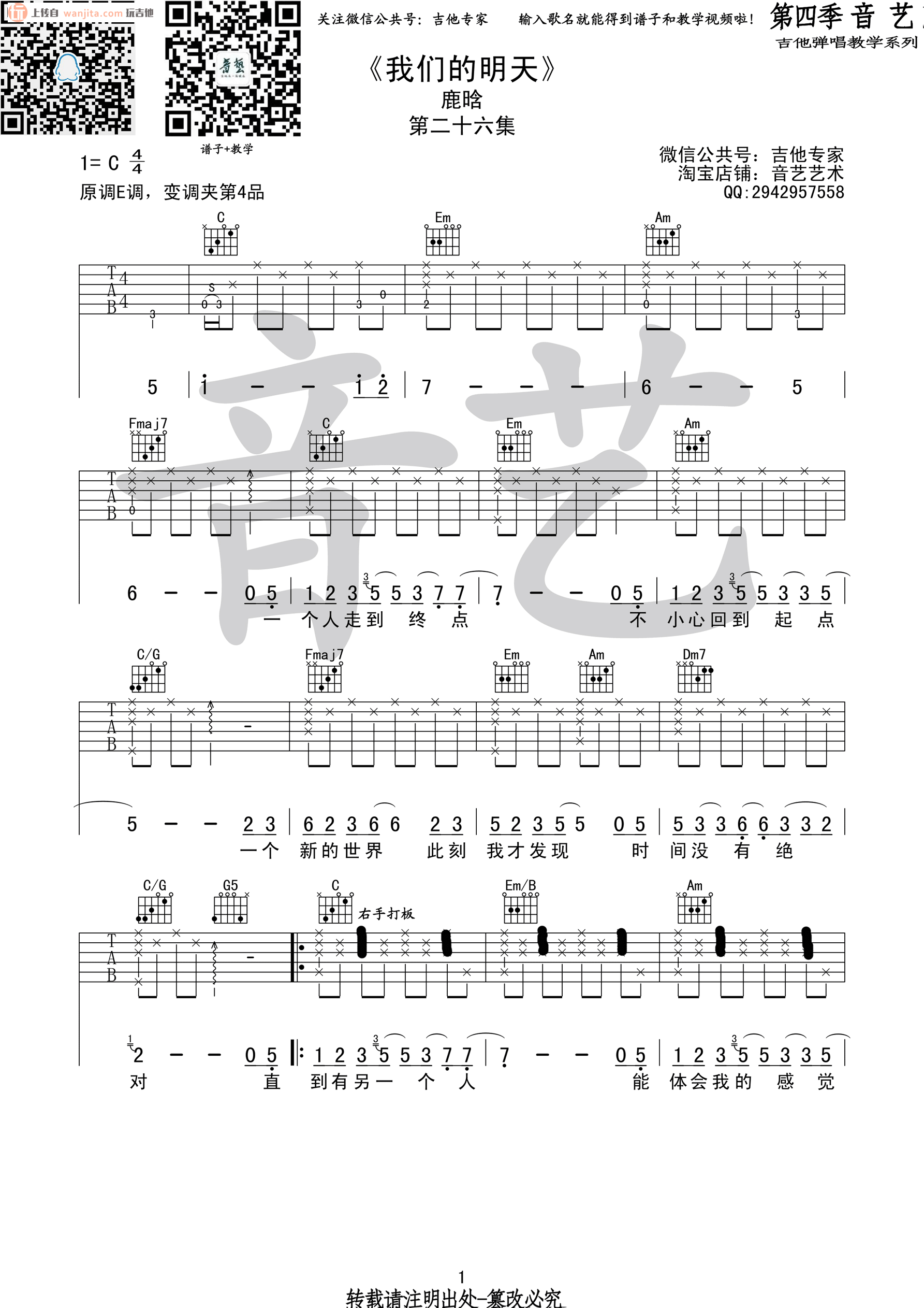 我们的明天吉他谱 - 鹿晗 - C调吉他弹唱谱 - 原版