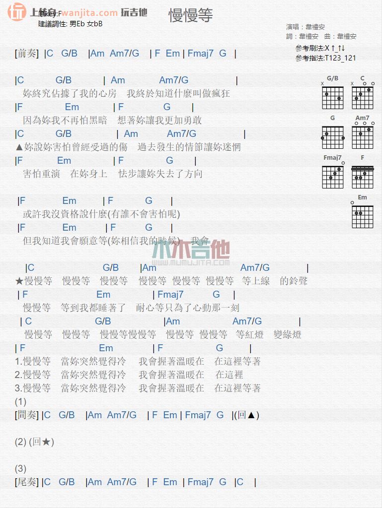 当前位置:琴谱网>吉他弹唱>慢慢等