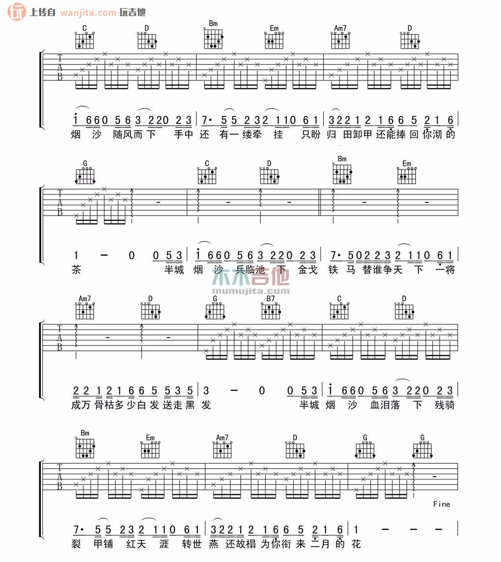 当前位置:琴谱网>吉他弹唱>半城烟沙