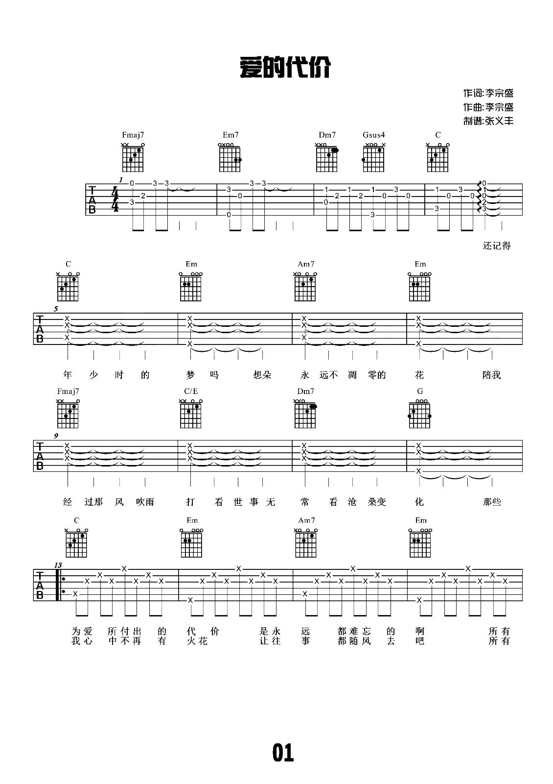 爱的代价吉他谱 - 李宗盛 - 吉他弹唱谱
