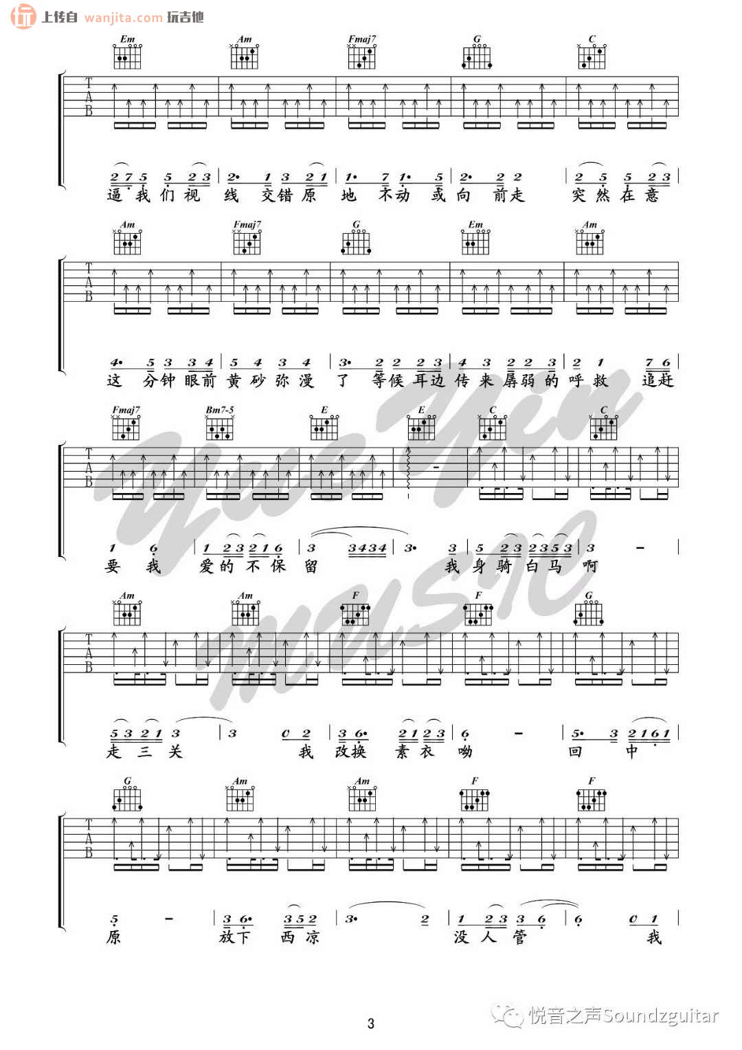 当前位置:琴谱网>吉他弹唱>身骑白马