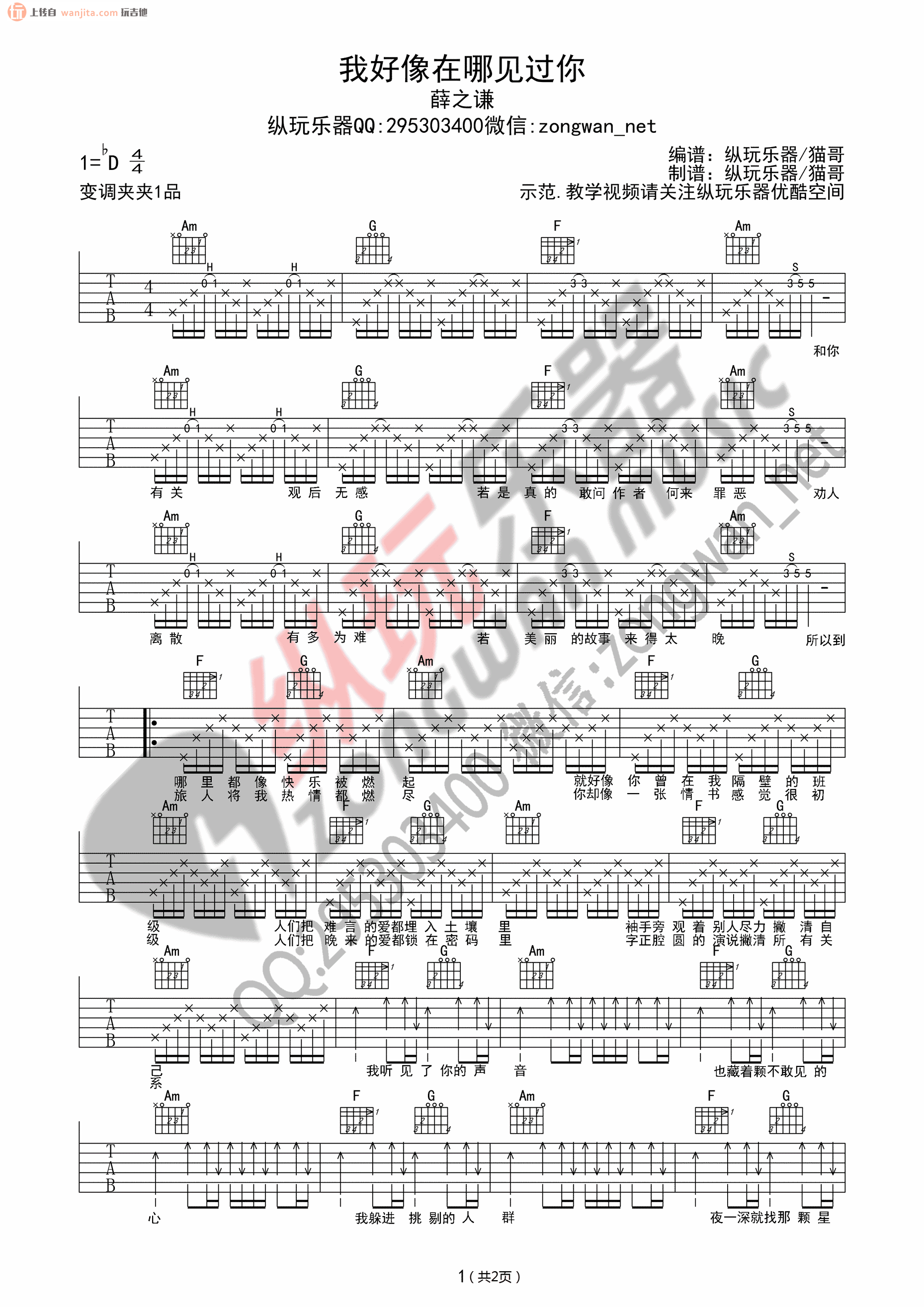 曲谱介绍: 薛之谦《我好像在哪见过你》吉他弹唱谱,共有2张高清图谱,免翻页排版设计。