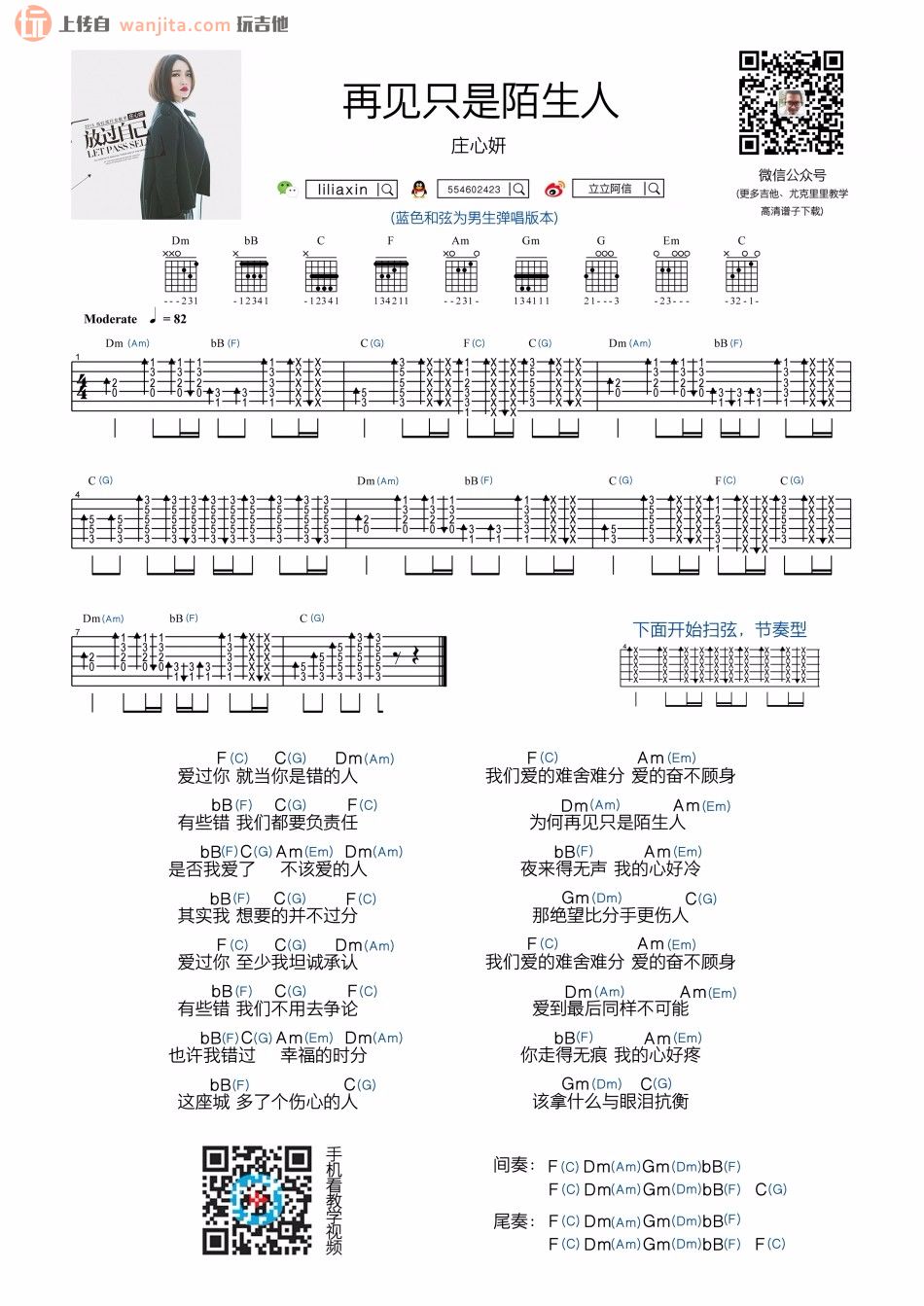 再见只是陌生人吉他谱 - 庄心妍 - 吉他弹唱谱 - 原版
