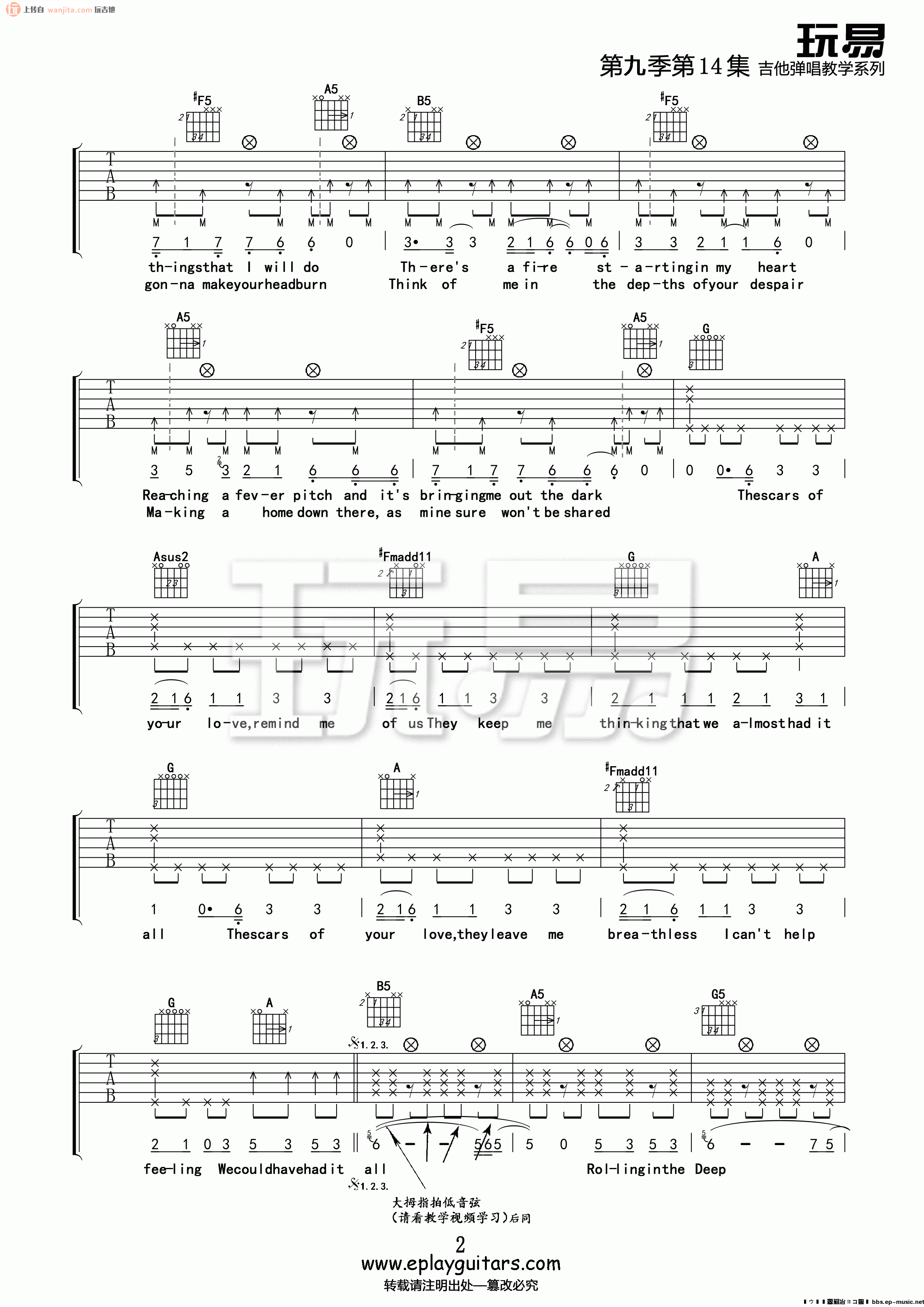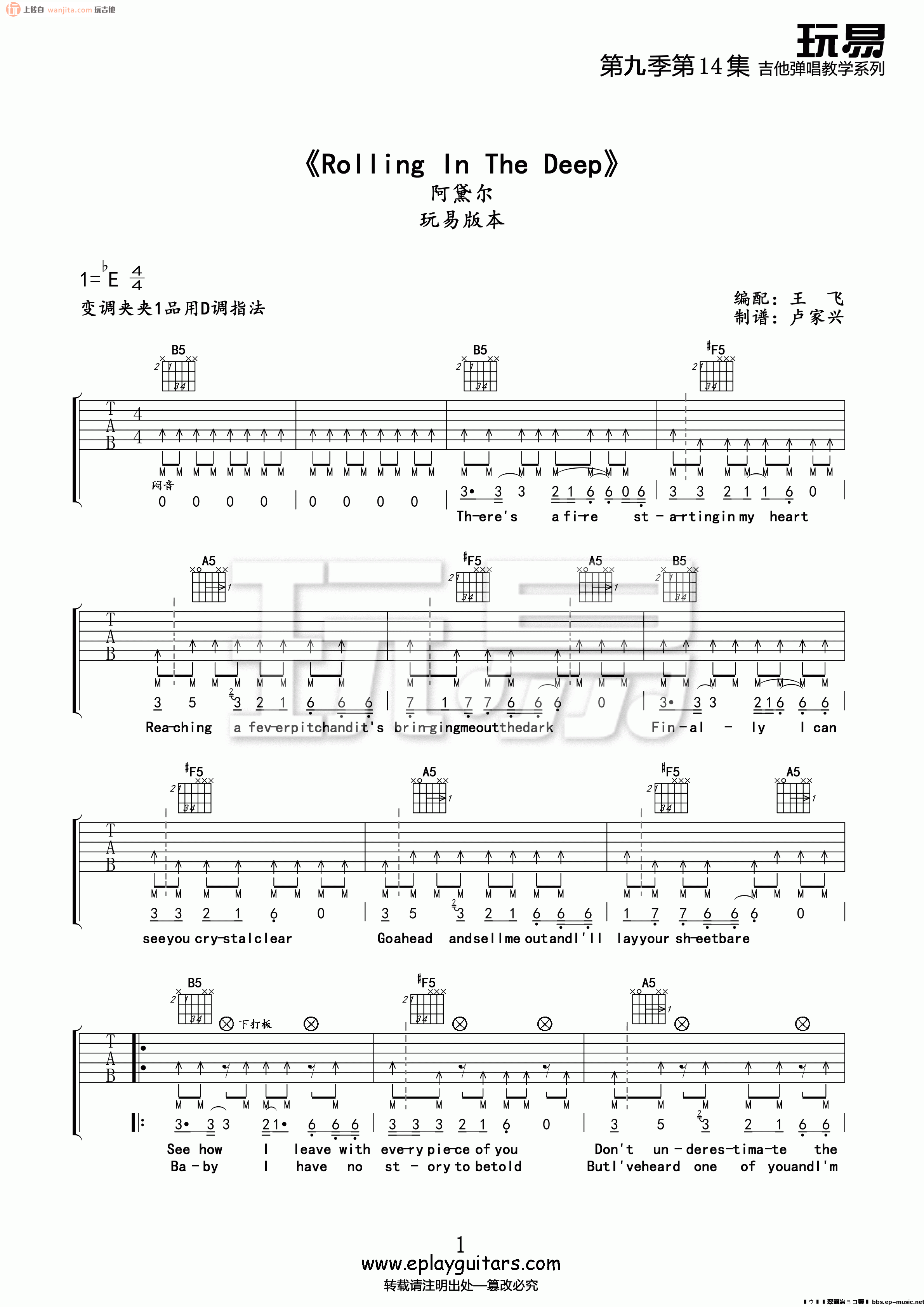 Rolling In The Deep吉他谱 - Rolling - E调吉他弹唱谱 - 原版